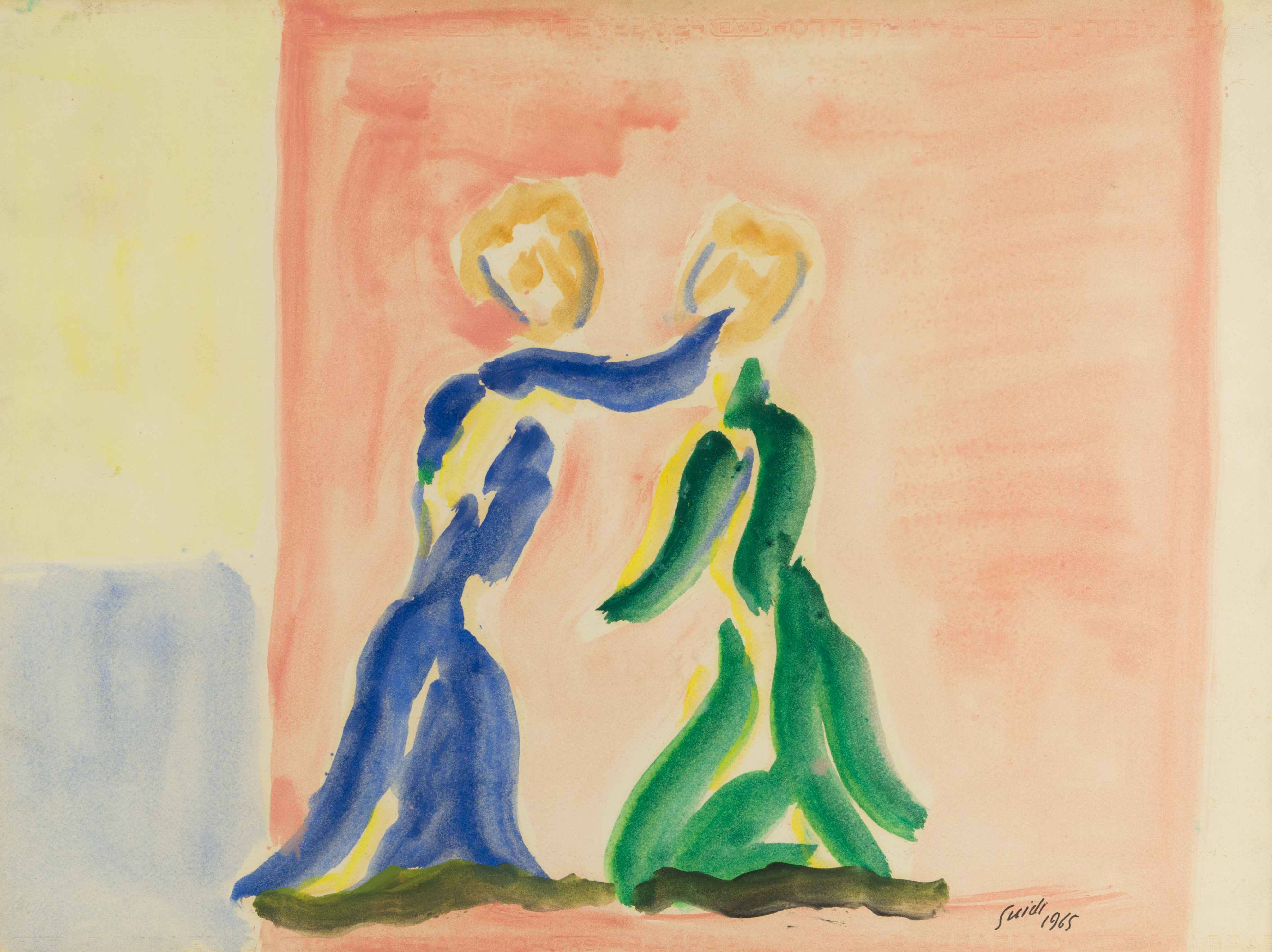 VIRGILIO GUIDI Incontro 1965 tecnica mista su carta cm 49 x 66 firmato e datato in basso a destra autentica dell'autore su fotografia (289) provenienza: studio dell'artista Contemporante - Prato, n°. 3247 Galleria Tega - Milano