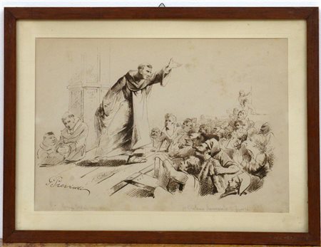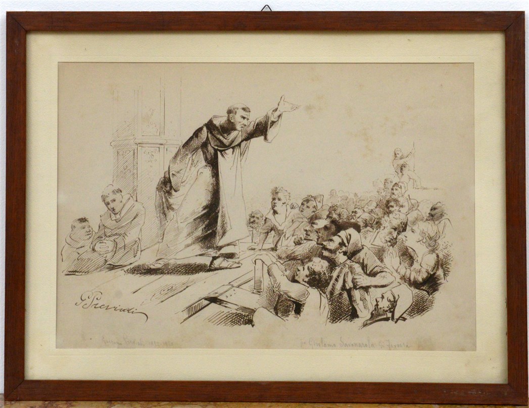 Ignoto "Savonarola" china su carta (cm 28.5x42) Reca firma G.Previati in basso a sinistra, in basso a destra iscrizione. In cornice��