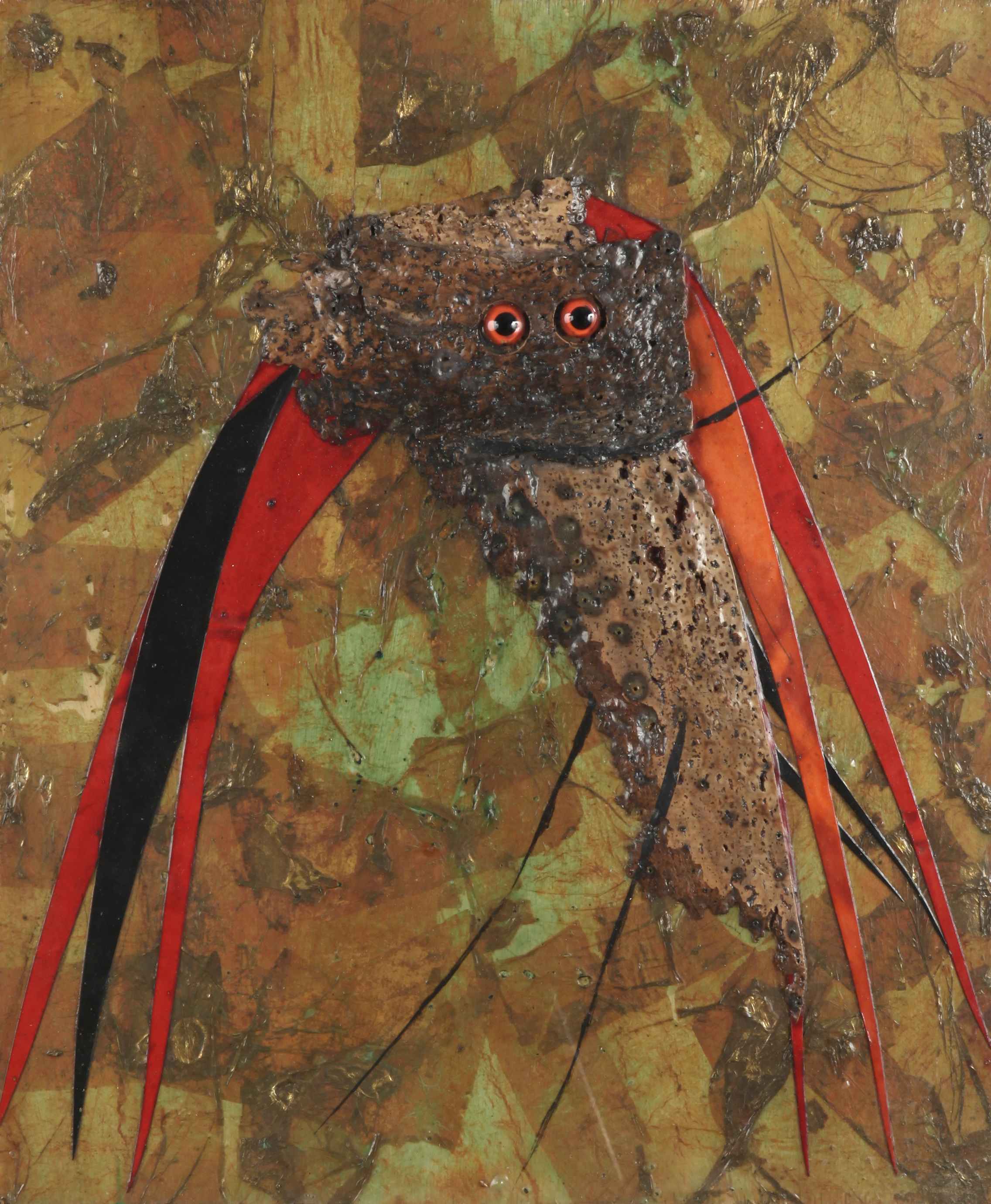 ROBERTO CRIPPA Bird 1971 collage su tavola cm 55 x 46 firmato, datato e titolato sul retro autentica di Crippa Junior su foto inserito nel catalogo Generale di Roberto Crippa a cura della Galleria Pace con il n° 990