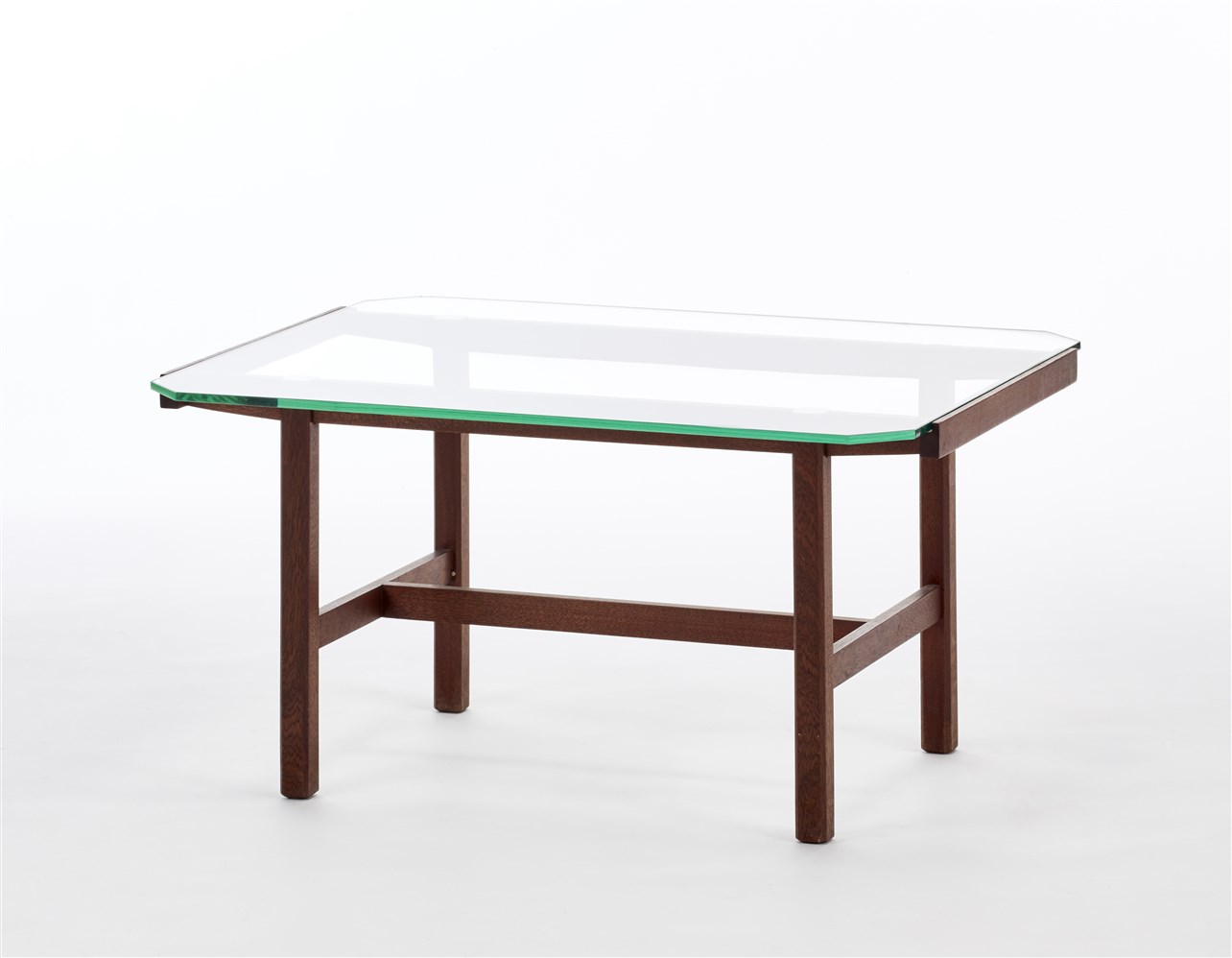Coffee table. Italy, 1960s. Solid teak structure and octagonal top in bevelled crystal. (81x42.5x65 cm.) (slight defects)