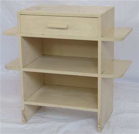 Mobiletto - servant ad un cassetto e ripiani in legno laccato bianco. Italia, anni '30/'40. (cm 96x91x45) (lievi difetti)