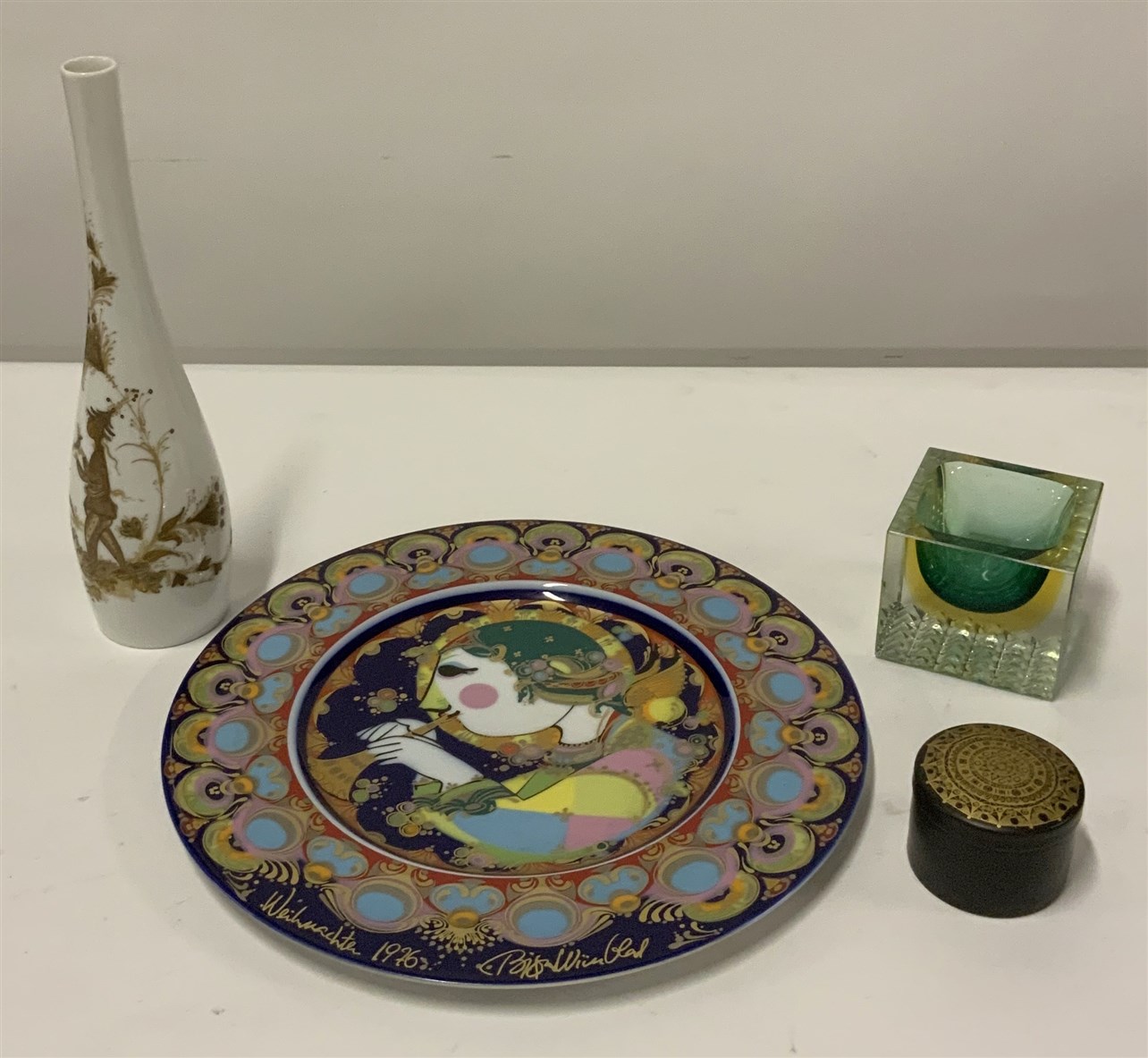 Lotto composto da un posacenere in vetro e tre oggetti diversi della serie Studio Linie della manifattura Rosenthal. Anni '70. (Misure diverse)