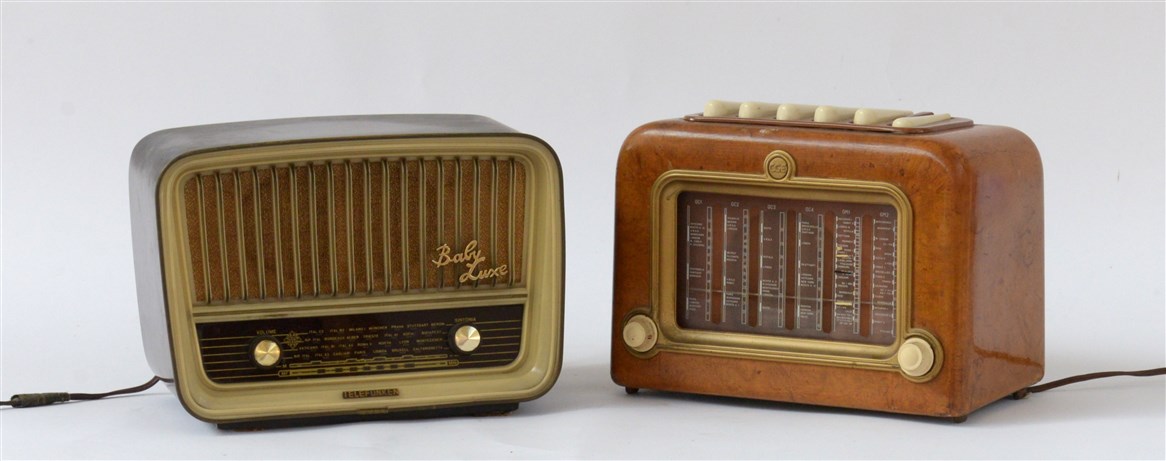 Lotto composto da una radio a valvole CGE modello "Super gioiello 195", Milano anni '40/50 unita a una radio a valvole Telefunken modello "R230", Italia, 1960. (Misure diverse) (difetti)