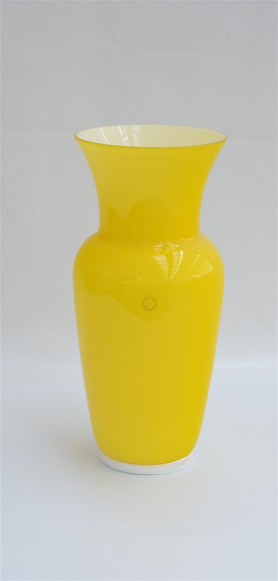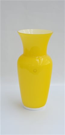 Vaso a balaustro della serie "Opalini". Murano, 1986. Vetro incamiciato giallo lattimo. Disegno n° 706.23 del catalogo verde. Firmato a punta sotto la base "Venini 86". (h cm 35,8)