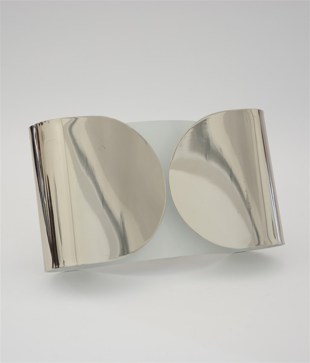 Applique modello "Foglio". Produzione Flos, Milano, disegno del 1966. Struttura in alluminio e paralume in foglio d'acciaio stampato e piegato. (cm 37x21x11) (lievi difetti)
