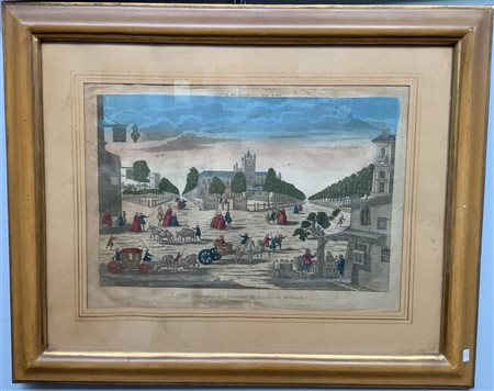 Incisione acquarellata dal secolo XVIII raffigurante veduta prospettica dei din