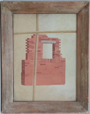 Guido Marussig "Finestra" tecnica mista su cartone pressato cm 70x50 firmato in