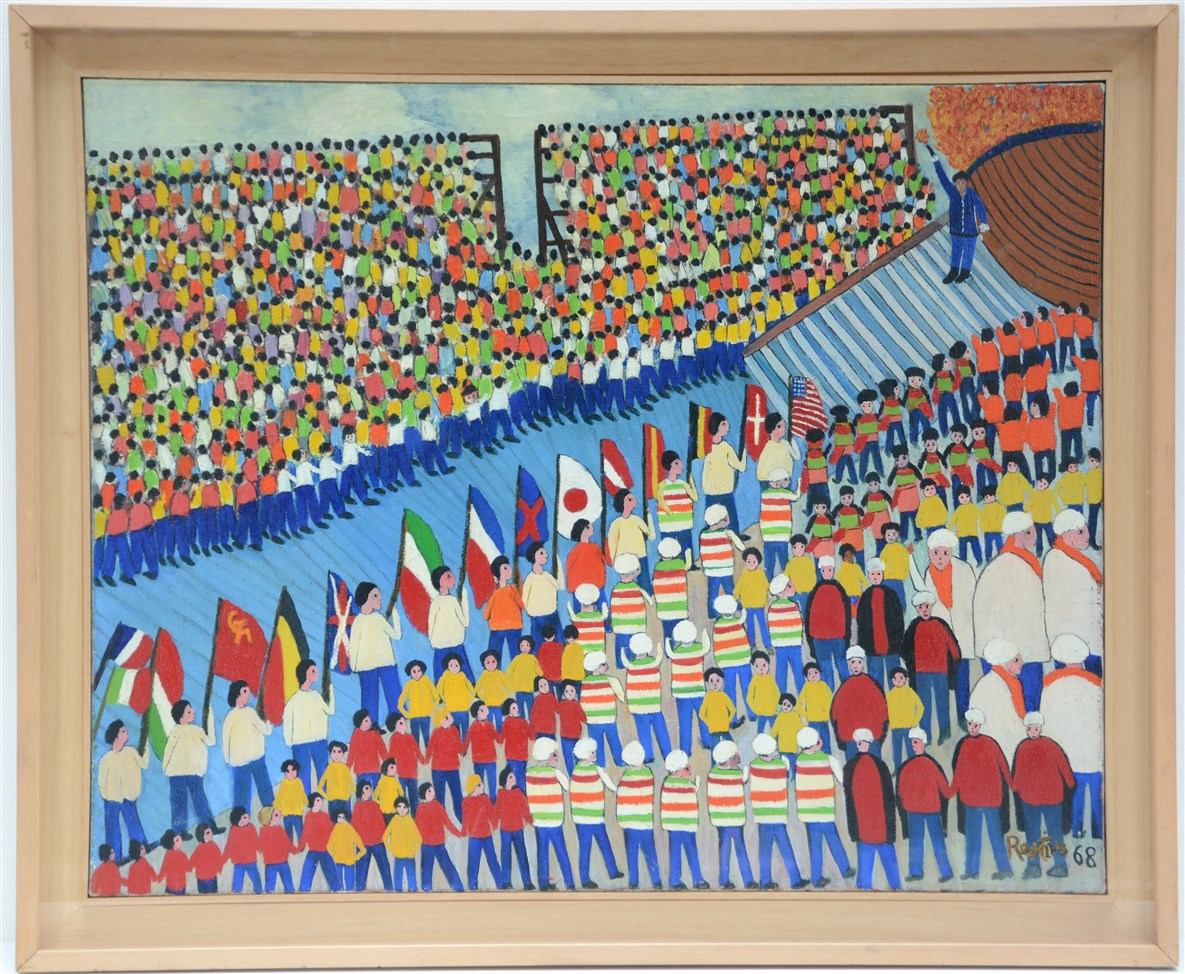 Antonio Restivo "Les Jeux de Grenoble Olympique" 1968 olio su tela cm 65x81 firm