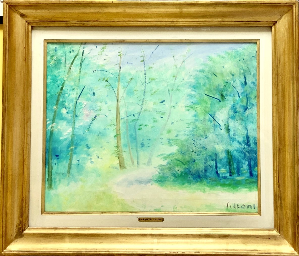 Umberto Lilloni "Mattino nel bosco" 1971 olio su tela cm 40x50 firmato in basso