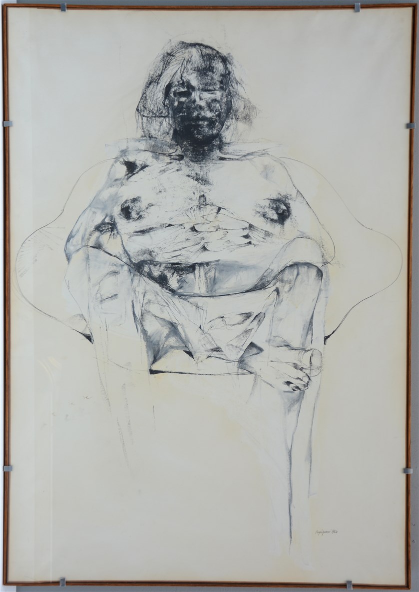 Renzo Vespignani "Figura seduta" 1964tecnica mista su cartacm 99,5x69,5firmat