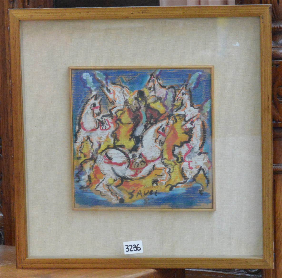Piero Gauli "Il circo" 1981 tecnica mista su cartoncino cm 20x20 firmato e titol