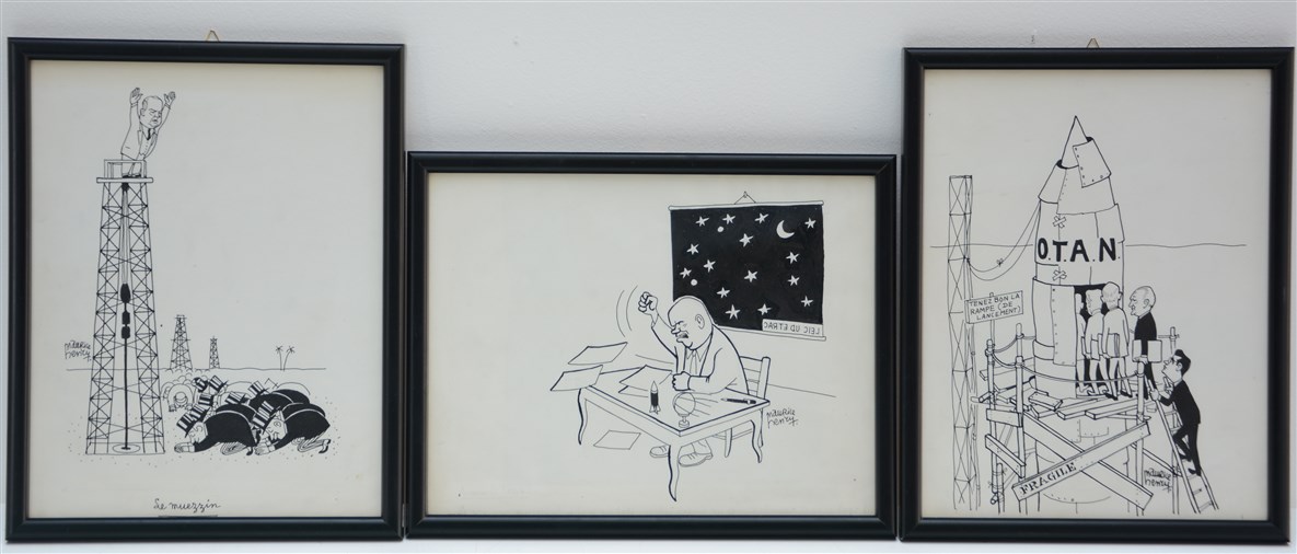 firmate. Alcune pubblicate alla fine degli anni '50 sul giornale France -Observateur. In cornici (lievi difetti)