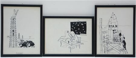 Maurice Henry Lotto composto da tre vignette satiriche a china su carta, raffigu