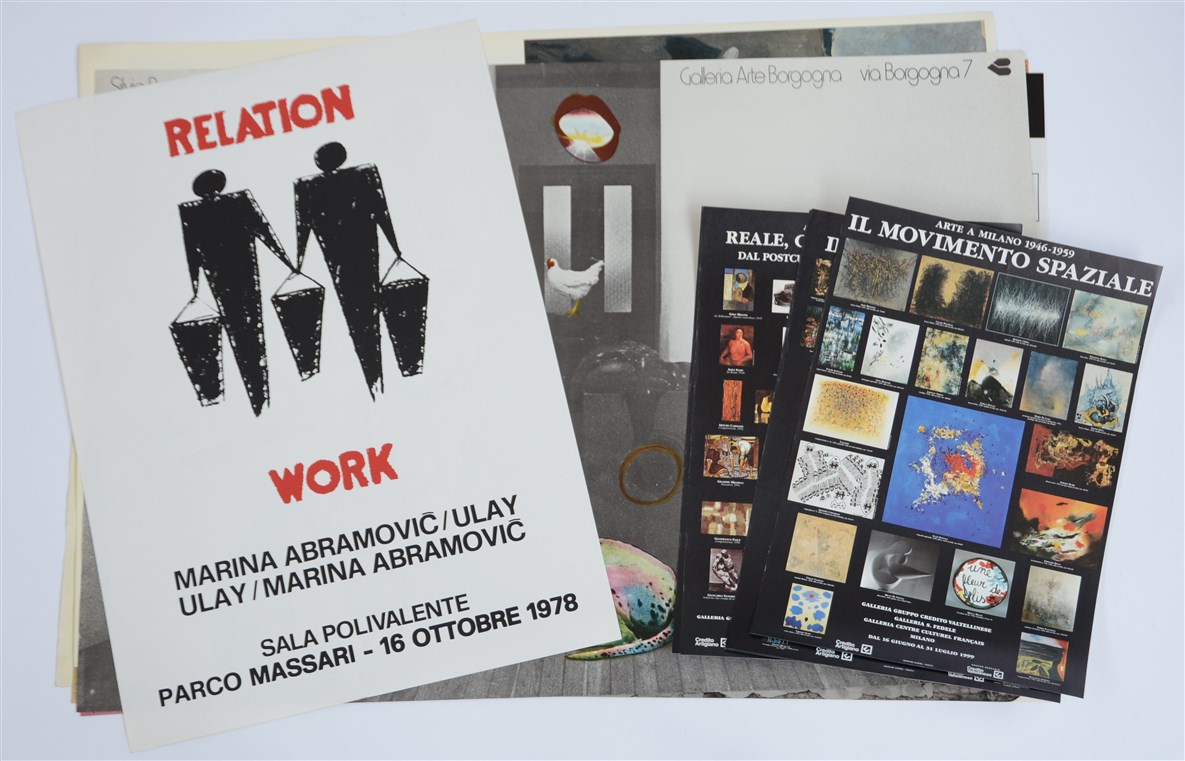 Lotto composto da alcuni poster espositivi tra cui "Relation Work - Marina Abramovic/Ulay" Sala Polivalente, Parco Massari, 16 ottobre 1978 e "Silvio Pasotti" Galleria Arte Borgogna, Milano, 21 ottobre - 14 novembre 1971