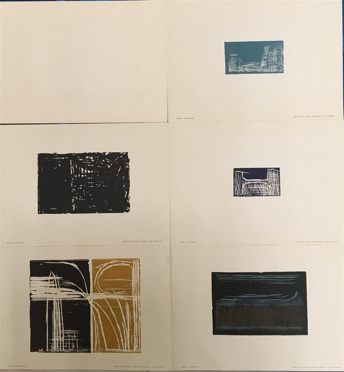Enrico Della Torre "La città" cartella contenente cinque xilografie a colori ci
