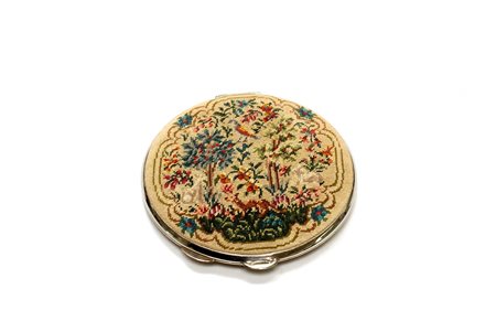 Portacipria di forma tonda con parte superiore decorata da ricamo a piccolo pun