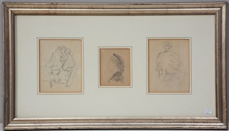 Ignoto, "Figure" tre disegni a matita su carta, al retro cartiglio della Galleria Schettini Milano. In un'unica cornice (difetti)