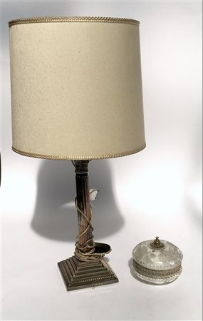 Lotto composto da una abat jour in metallo argentato e una scatola in vetro e m