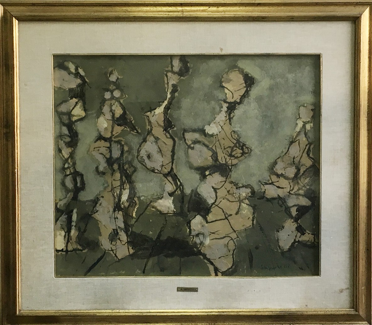Adolfo Saporetti "Maquillage" 1954 tecnica mista su masonite, cm 50x60 firmato