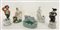 Gruppo di cinque calamai con figure in ceramica dipinta, fatture ed epoche diff