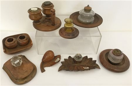 Gruppo di otto calamai in legno di differenti fatture (difetti e mancanze)