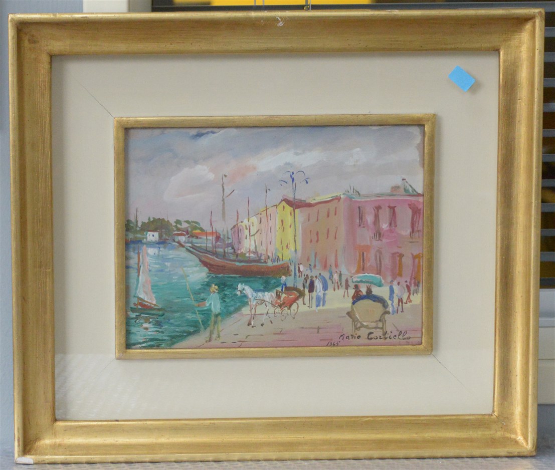 Mario Cortiello "Ischia, Il porto" olio su masonite (cm 18x24) Firmato e datato