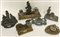Gruppo di sei calamai decorati con figure e animali di fatture e materiali differenti (difetti e mancanze)