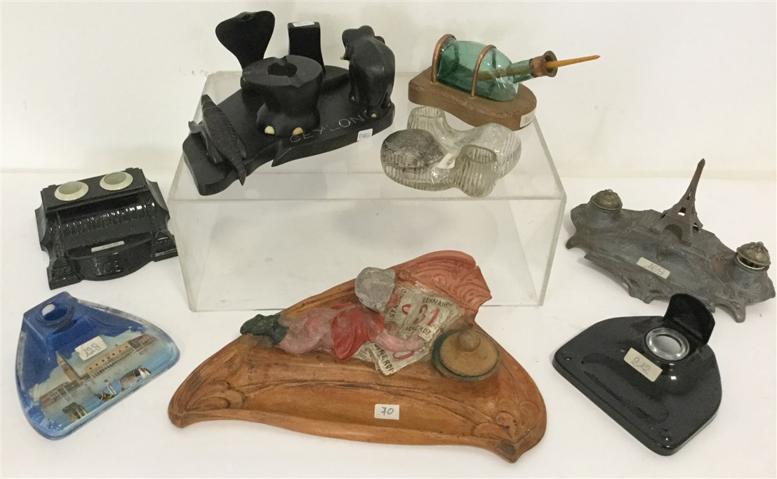 Lot 3911 | Gruppo di otto calamai di fatture, epoche e materiali differenti (difetti e man
