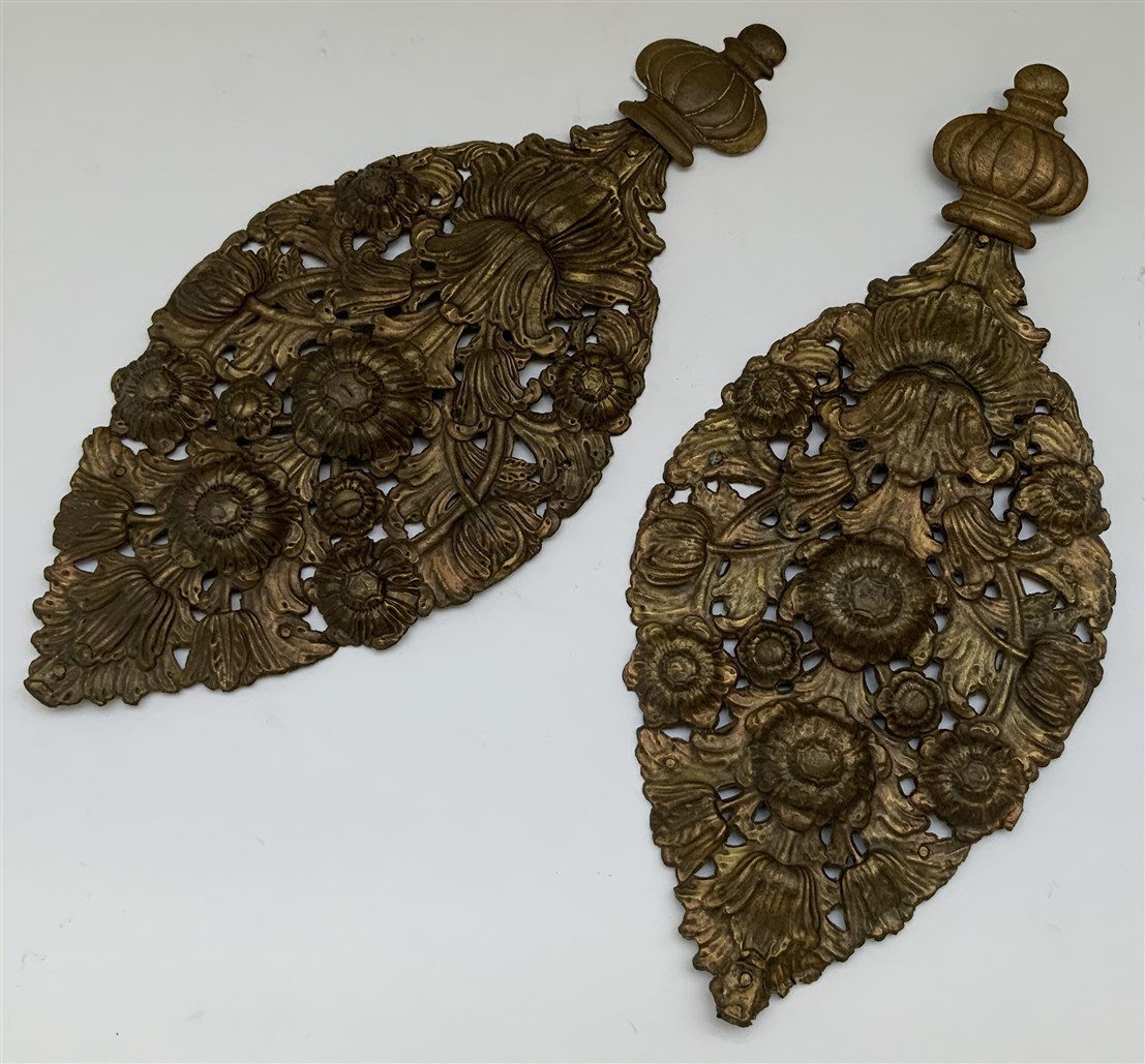 Coppia di appliques in metallo sbalzato a vaso fiorito. Secolo XIX (h. cm 63) (