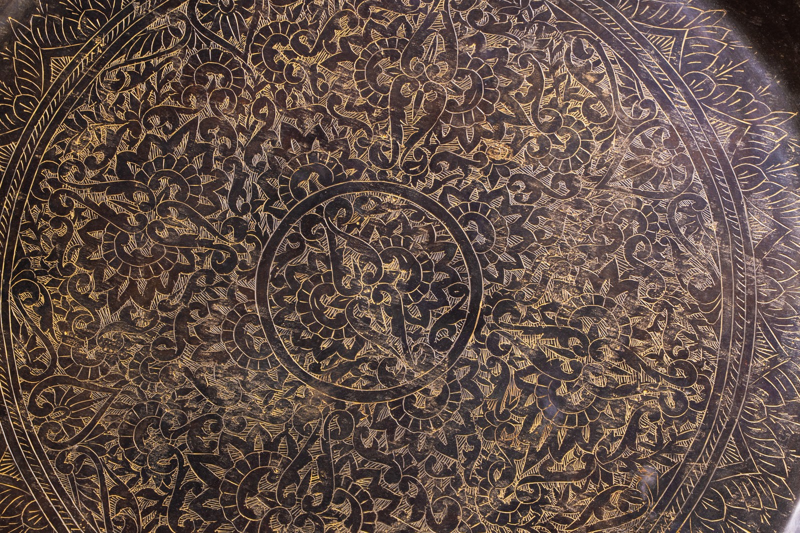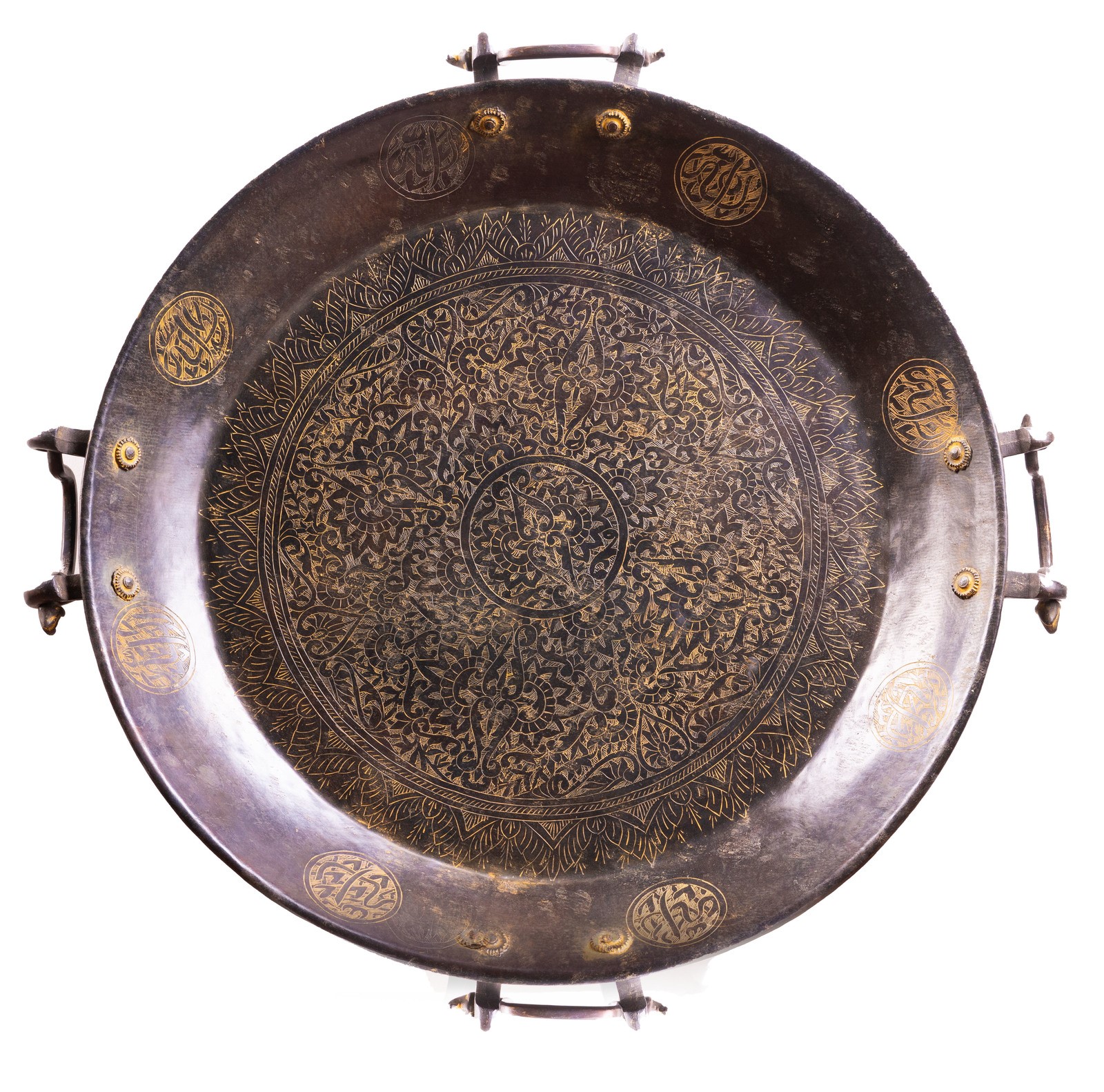Arte Islamica A large bronze tray engraved with inscriptions and floral motifs Levant, early 20th century .