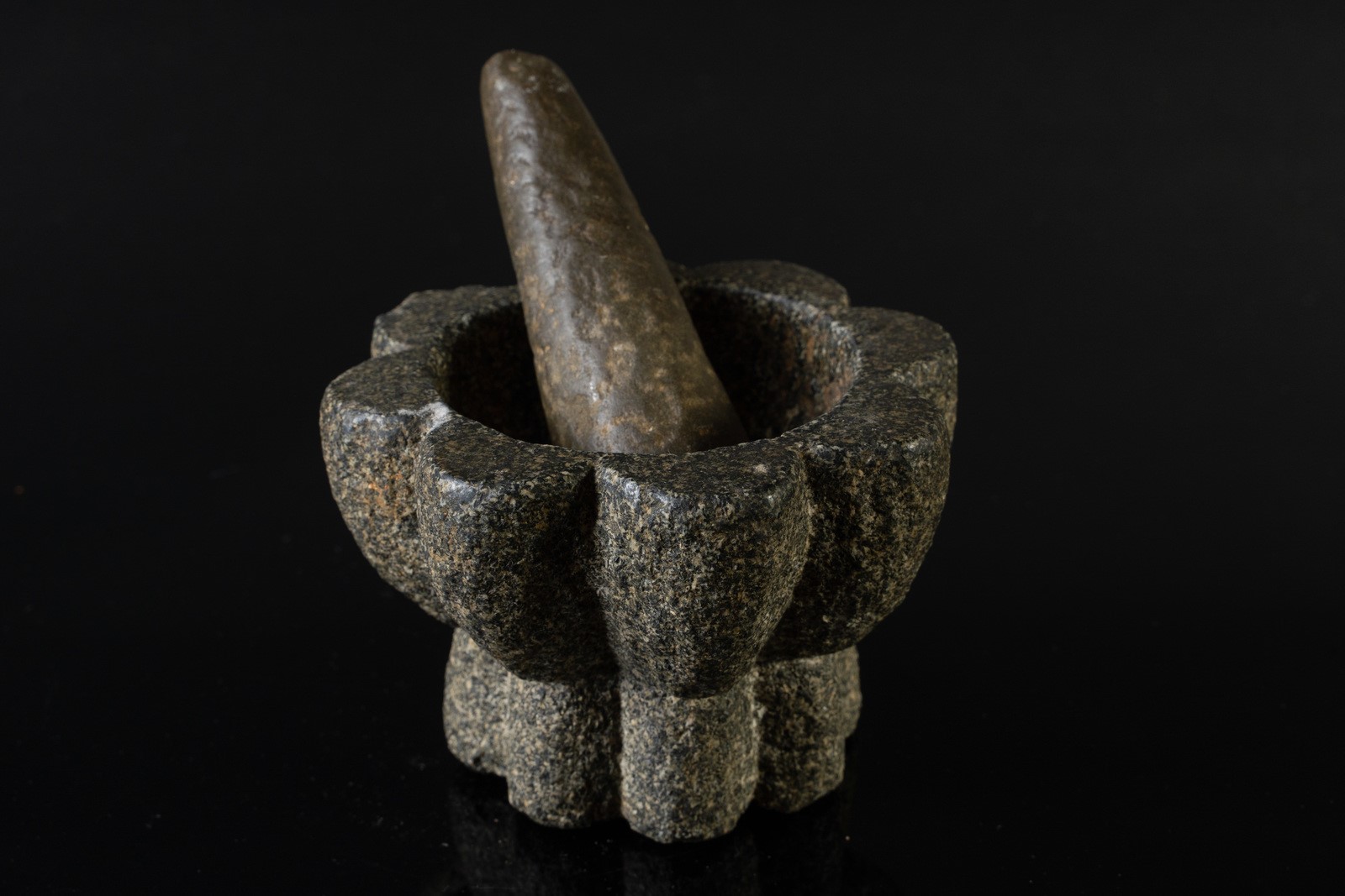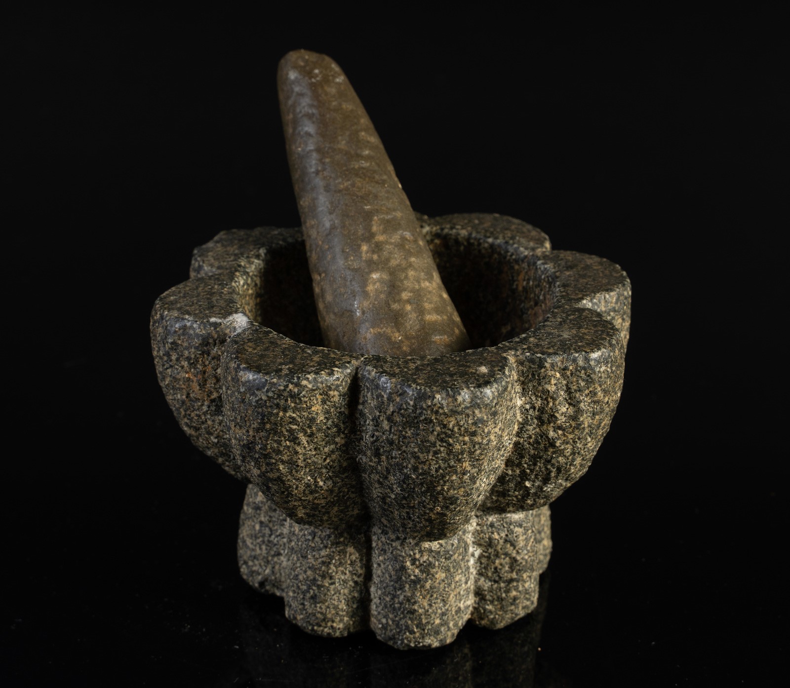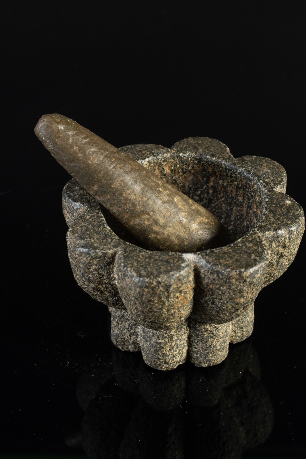 Islamic Art A stone flower shaped mortarPossibly Nasrid Spain, 14th 15th century . . Cm 12,50 x 8,00.