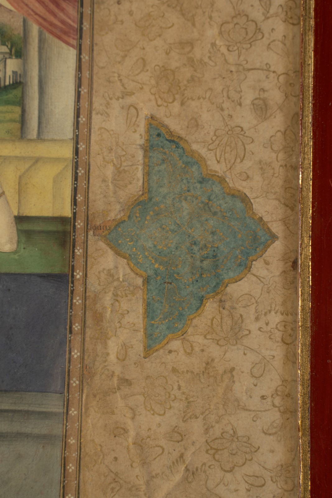 Islamic Art A painting depicting a woman bathing with an earlier, Persian, illuminated borderIndia, 19th century . . Cm 18,50 x 29,00. . Frame present