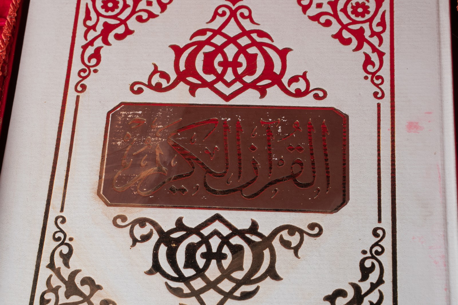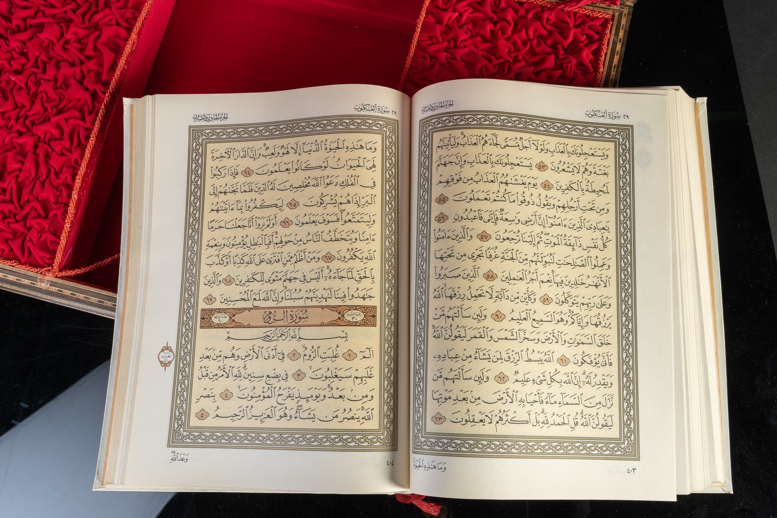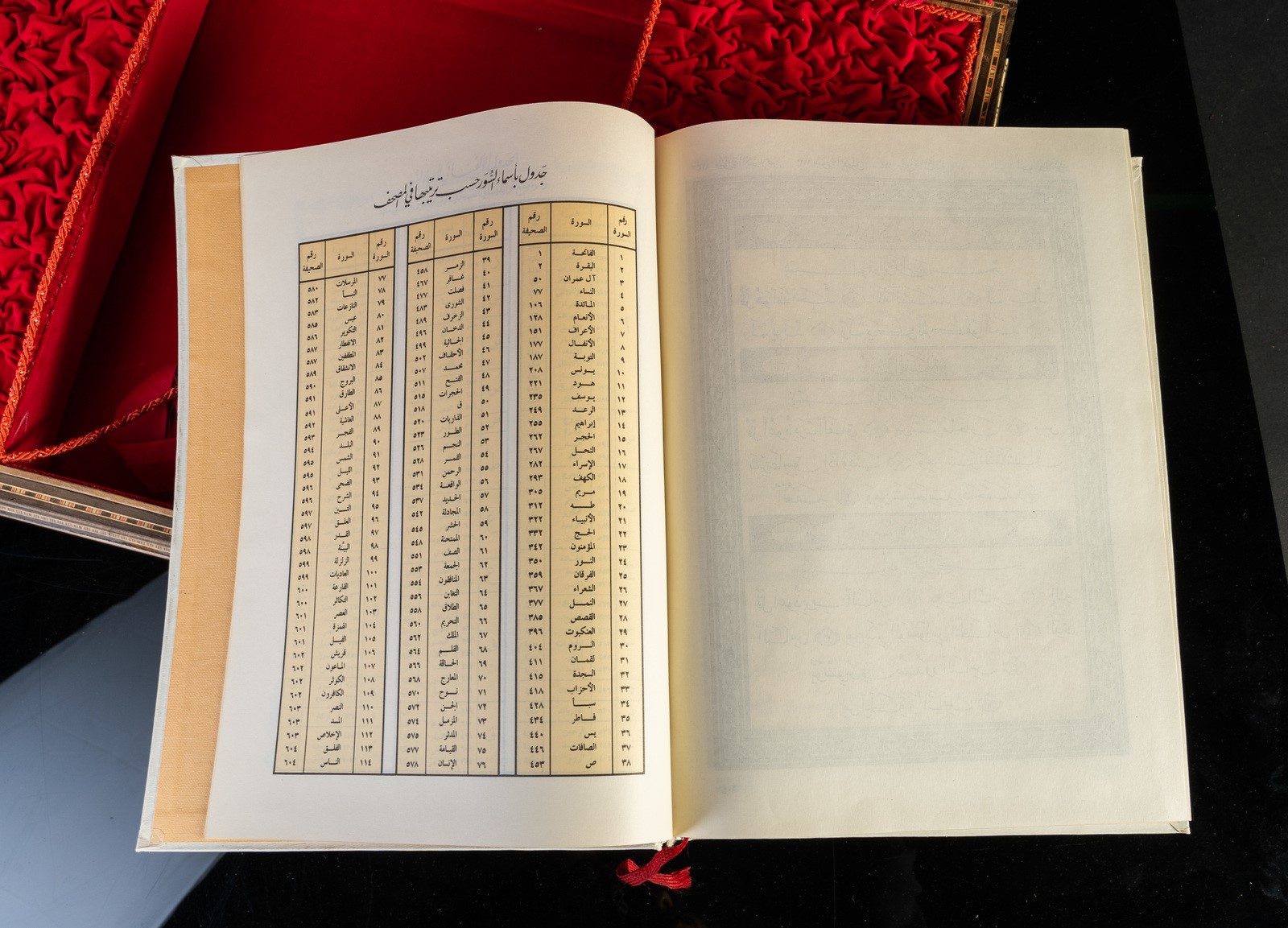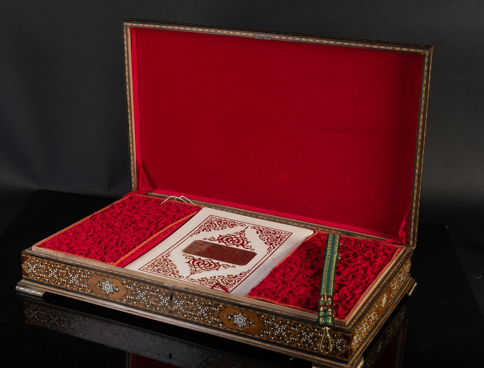 Arte Islamica A large mother of pearl inlaid Quran holder box with printed Quran insideNear East, 20th century .