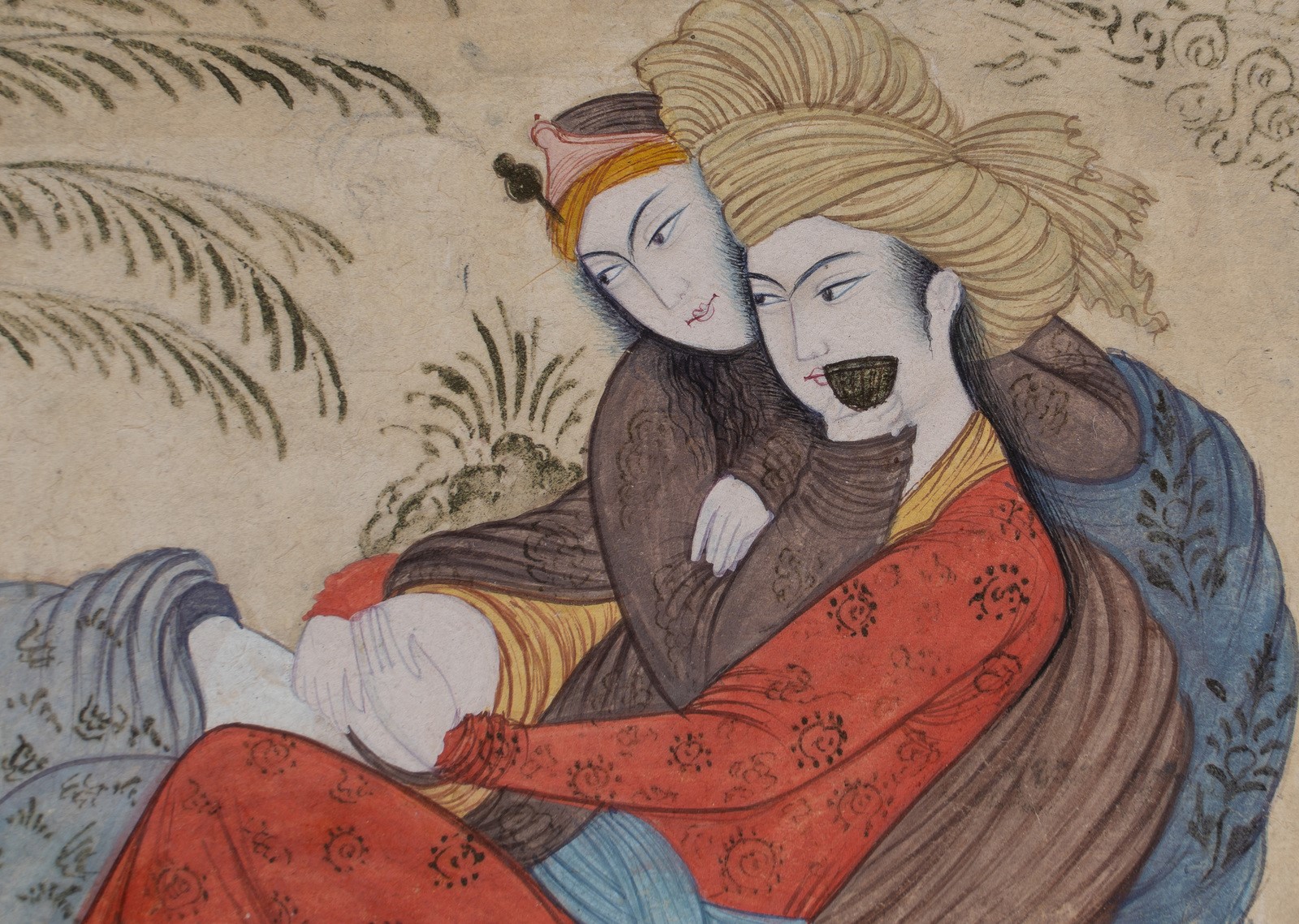 Arte Islamica A Safavid or 19th century painting depicting a couple Iran, 17th or 19th century .