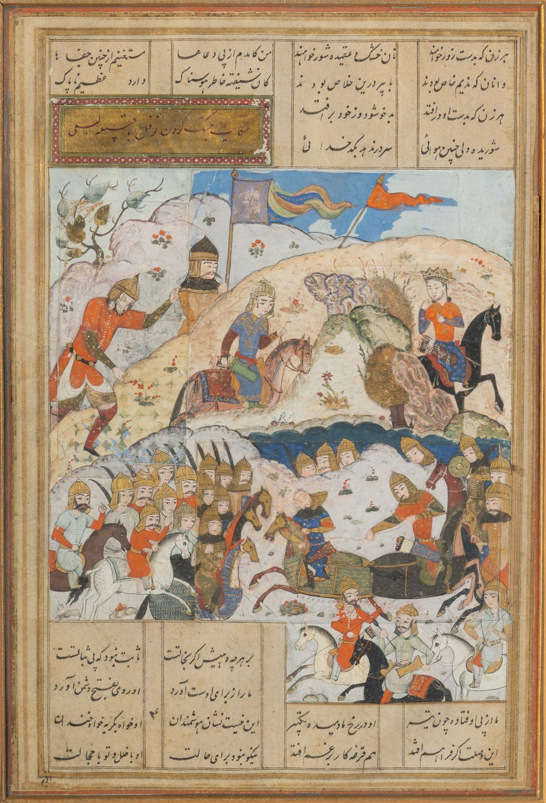 Arte Islamica A Timurid miniature painting from a Shahnameh depicting Nufel against Laila's tribeIran, possibly Herat, 15th century .
