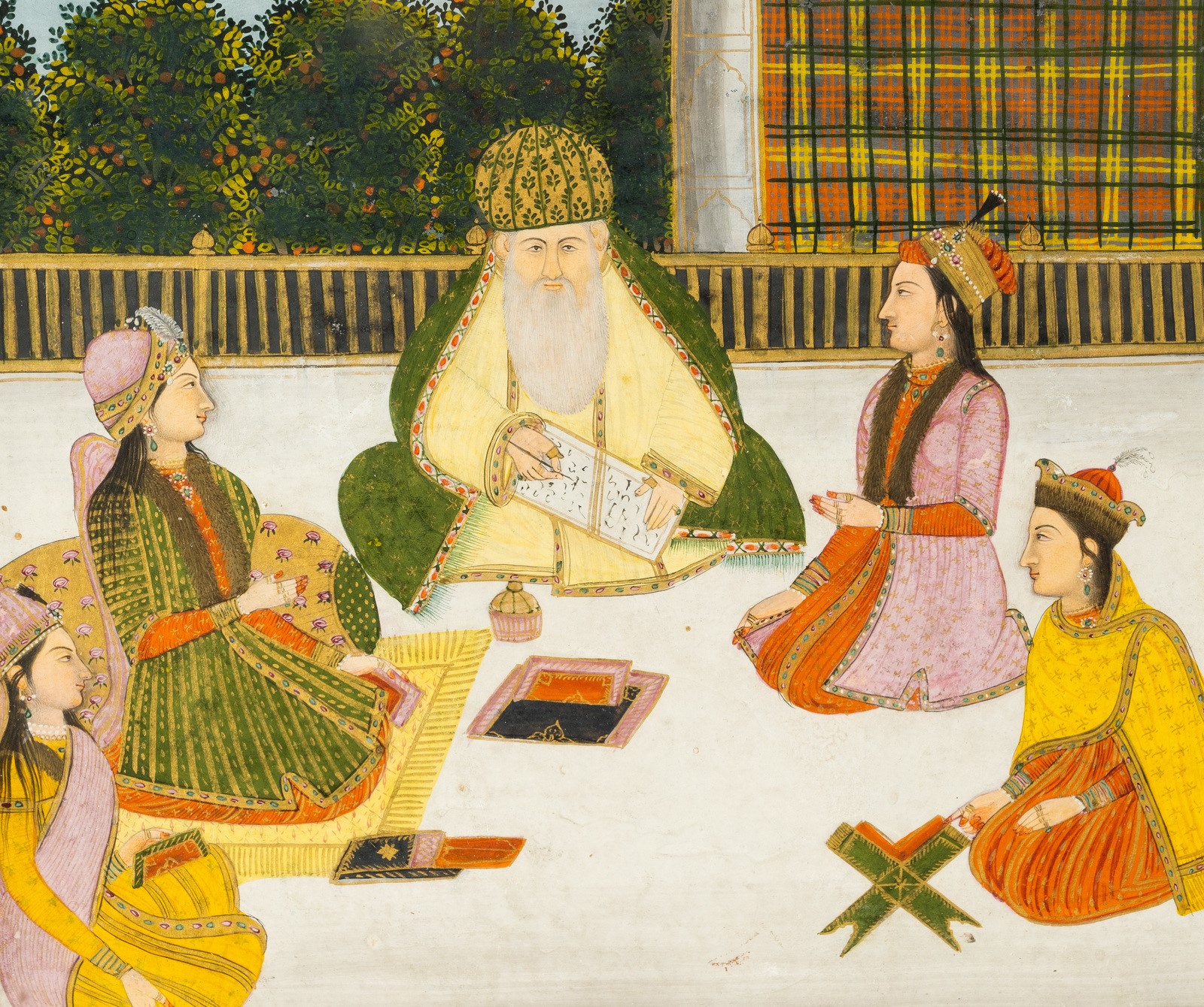 Arte Islamica A miniature painting depicting a Quran school on a terrace Lucknow or Faizabad, Mughal India, late 18th century Opaque pigments heightened with gold on paper.
