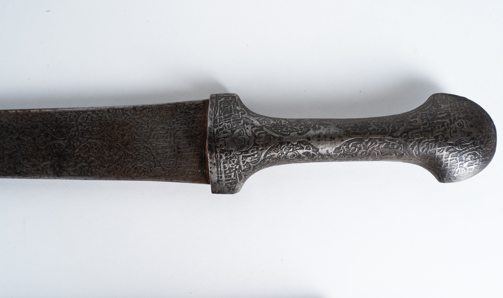 Islamic Art An iron or steel dagger with scabbard incised with arabesques Persia, 19th century . . Cm 43,00.