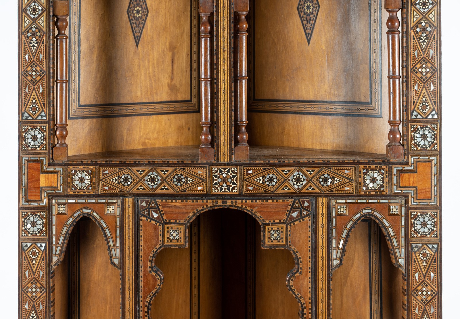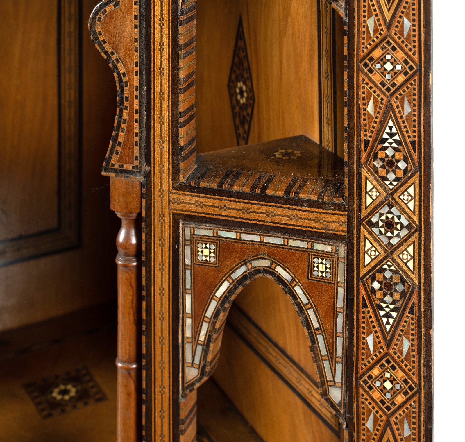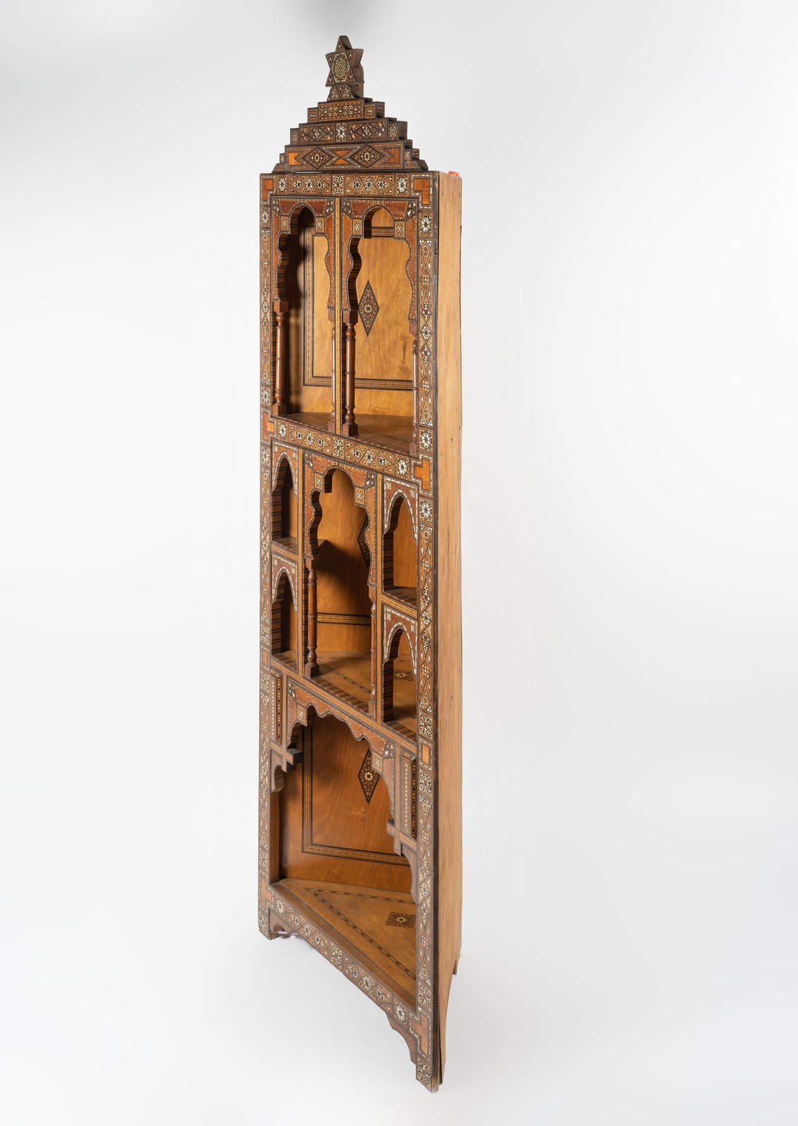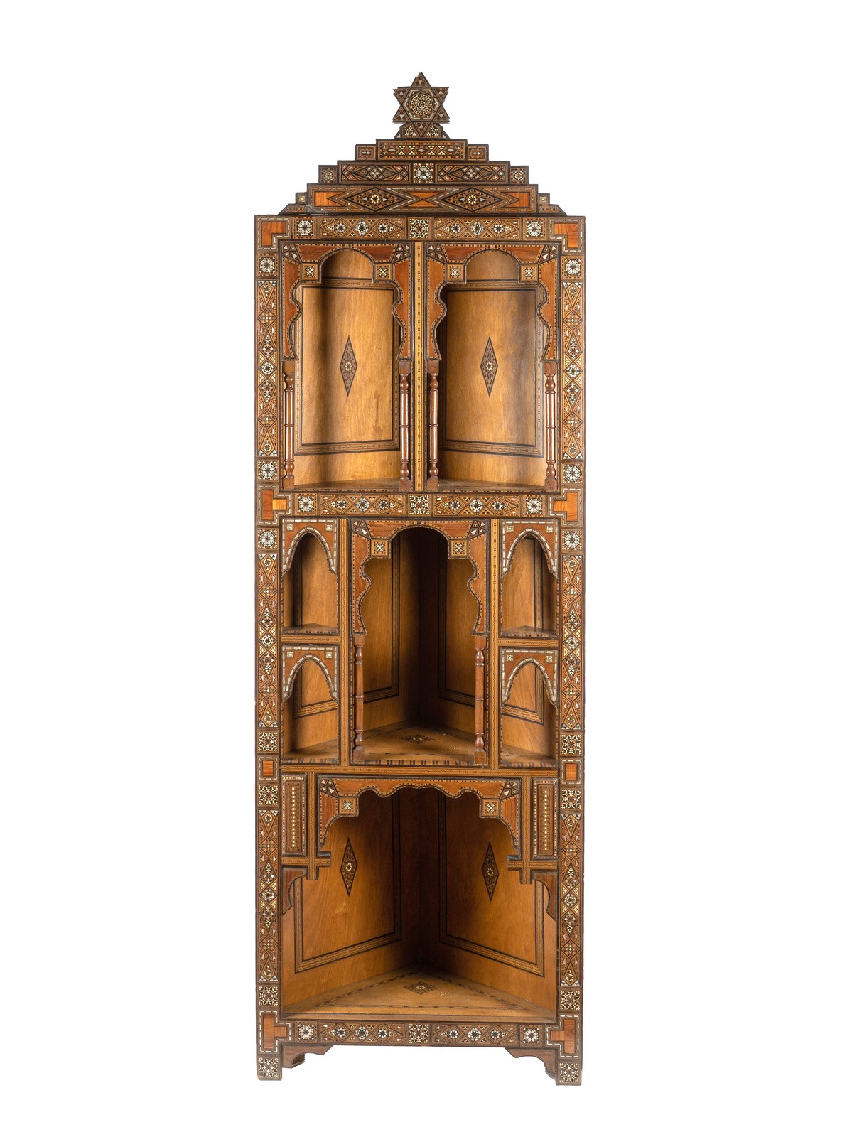 Arte Islamica A wooden marquetry corner shelf inlaid with mother-of-pearl, ivory and bone Ottoman empire, 19th century .