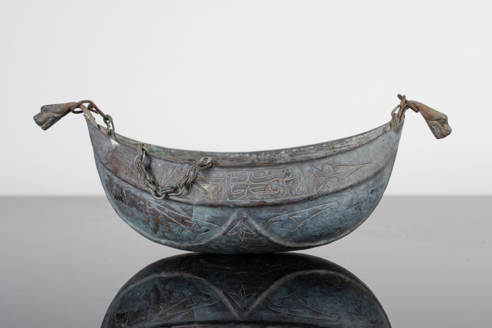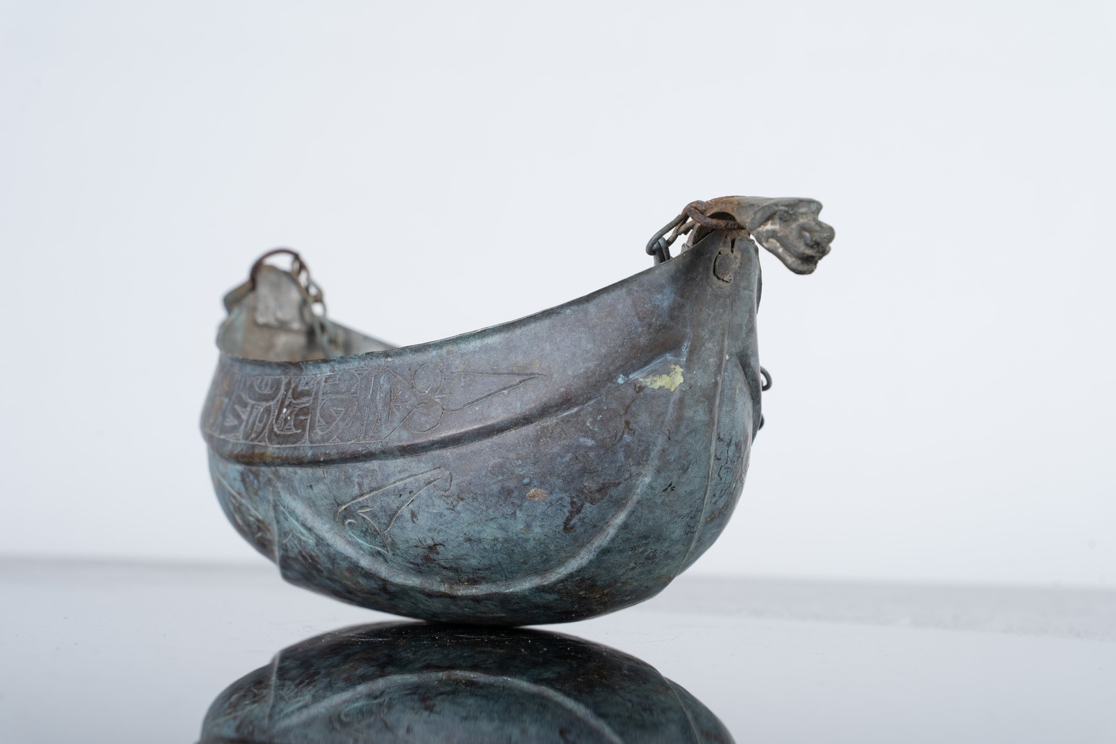 Islamic Art A bronze kashkul engraved with epigraphy and stylized vegetal motifs Egypt or Levant, late 19th-20th century . . Cm 27,50 x 10,00.