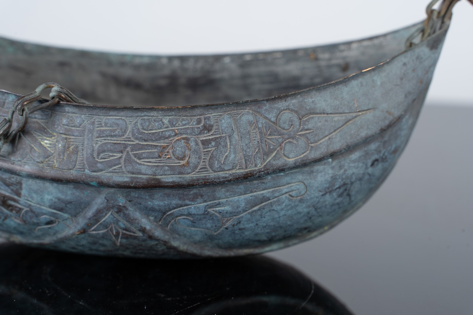Arte Islamica A bronze kashkul engraved with epigraphy and stylized vegetal motifs Egypt or Levant, late 19th-20th century .