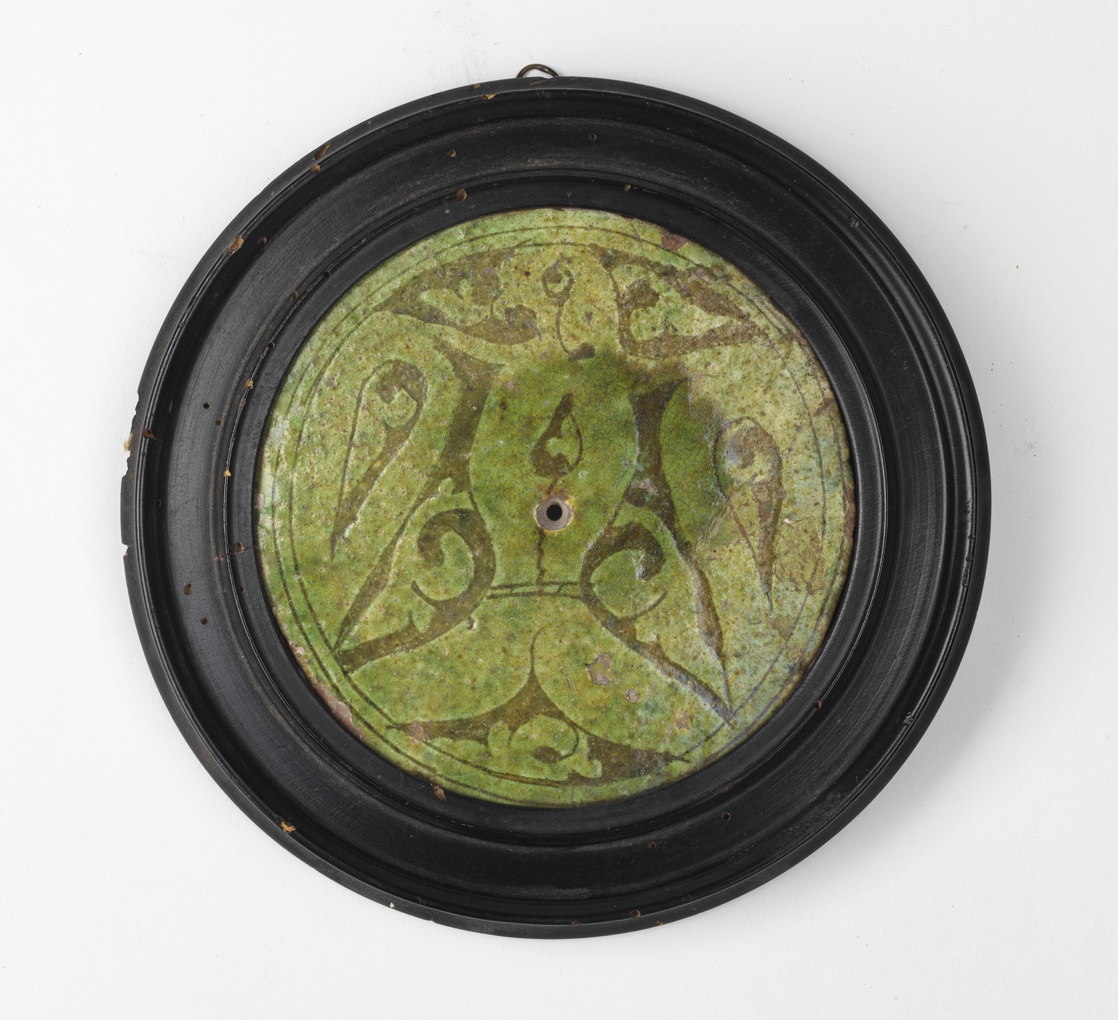 Arte Islamica A Garrus round tile with carved through decoration with birdIran, 12th-13th century .