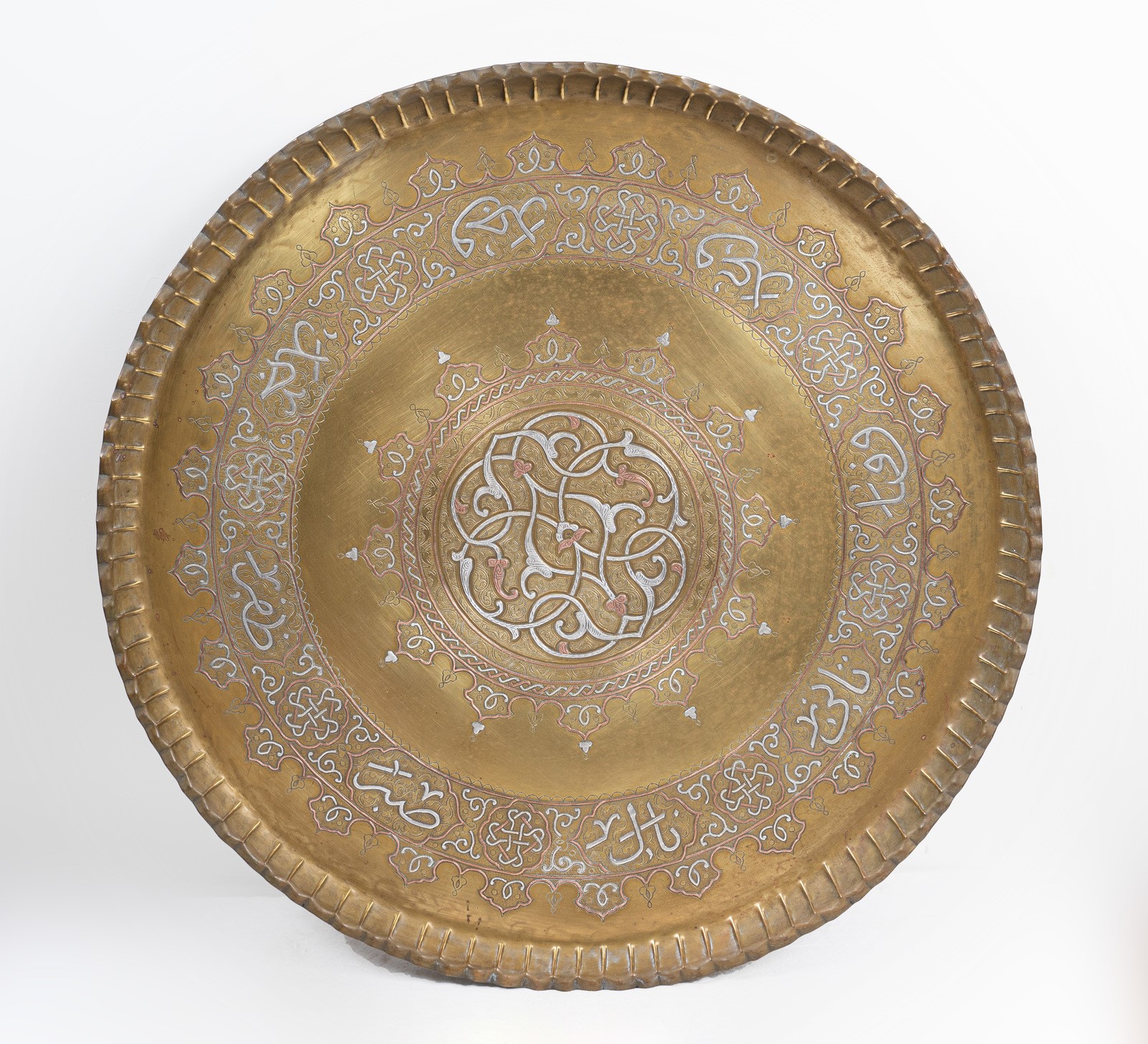 Arte Islamica A large Cairoware tray with silver and copper inlays Egypt, 19th century .