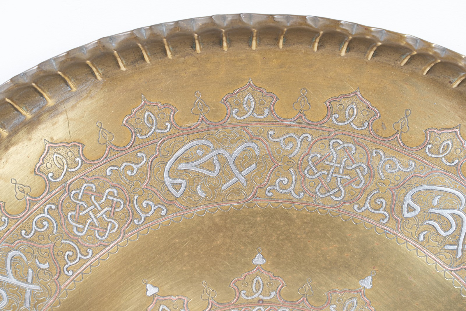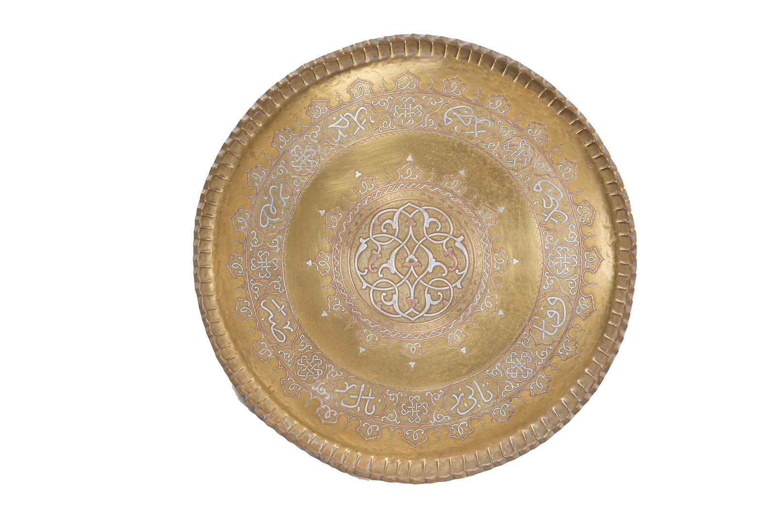 Islamic Art A large Cairoware tray with silver and copper inlays Egypt, 19th century . . Cm 71,00 x 5,50.