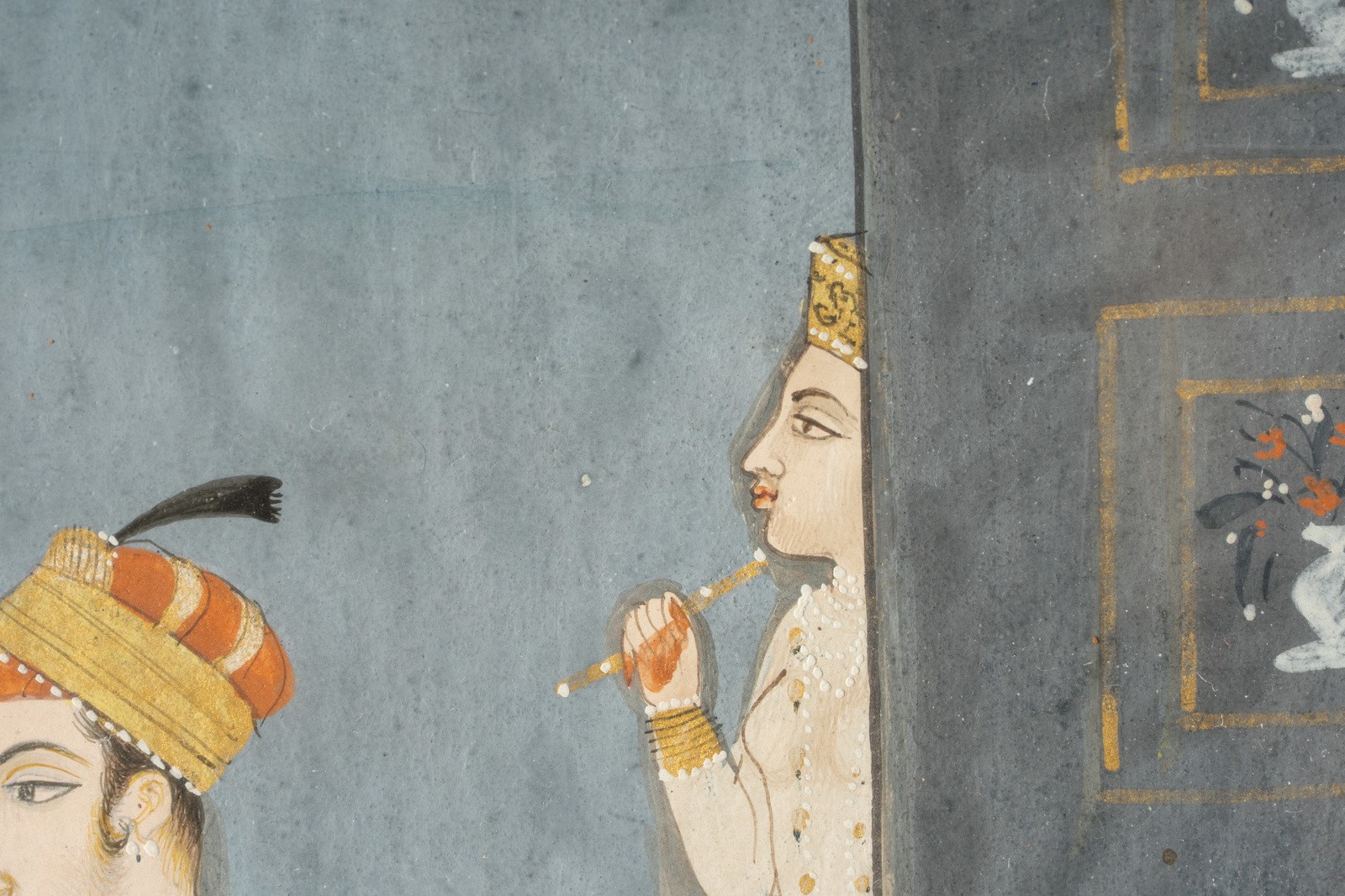 Indian Art A loving couple in the garden at night India, Rajasthan or Deccan, 19th century . . Cm 13,50 x 18,70. . Frame present