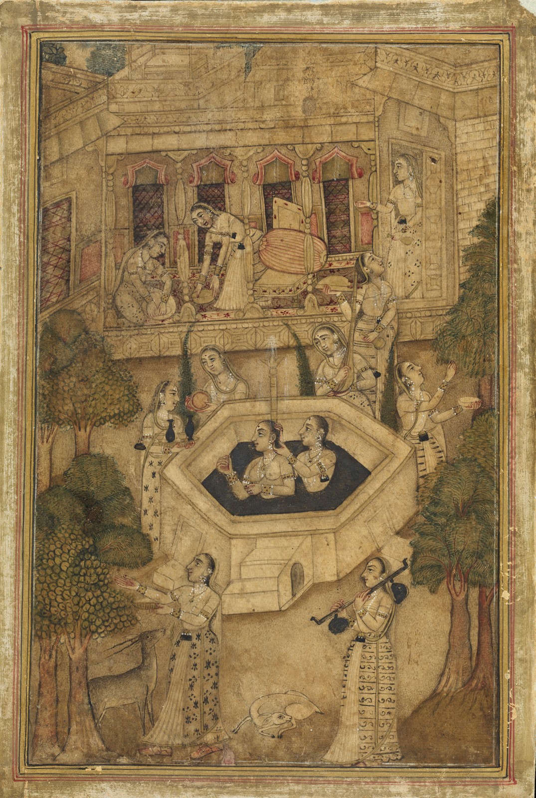 Arte Indiana A miniature painting depicting women bathingIndia, Provincial Mughal, 18th-19th century Ink, pigments and gold on paper .