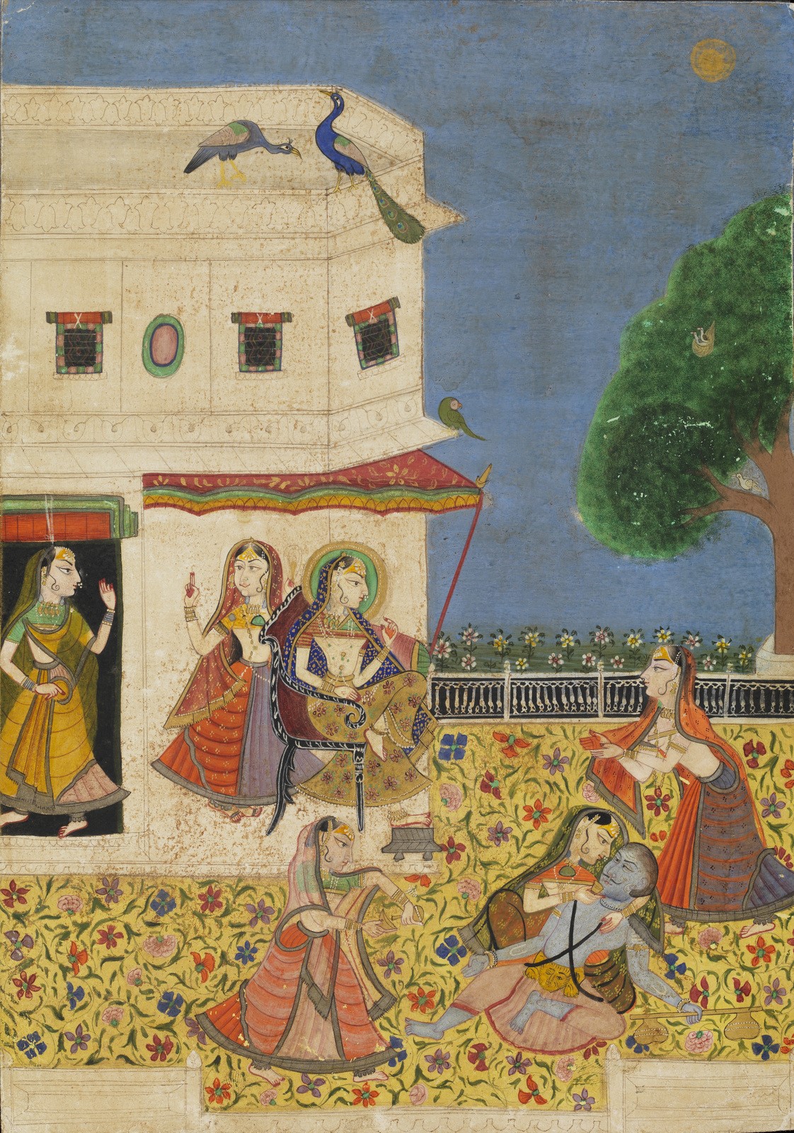 Arte Indiana A large section of a painting depicting the ascetic lover faintingNorthern India, 19th century Natural pigments and gold on paper .