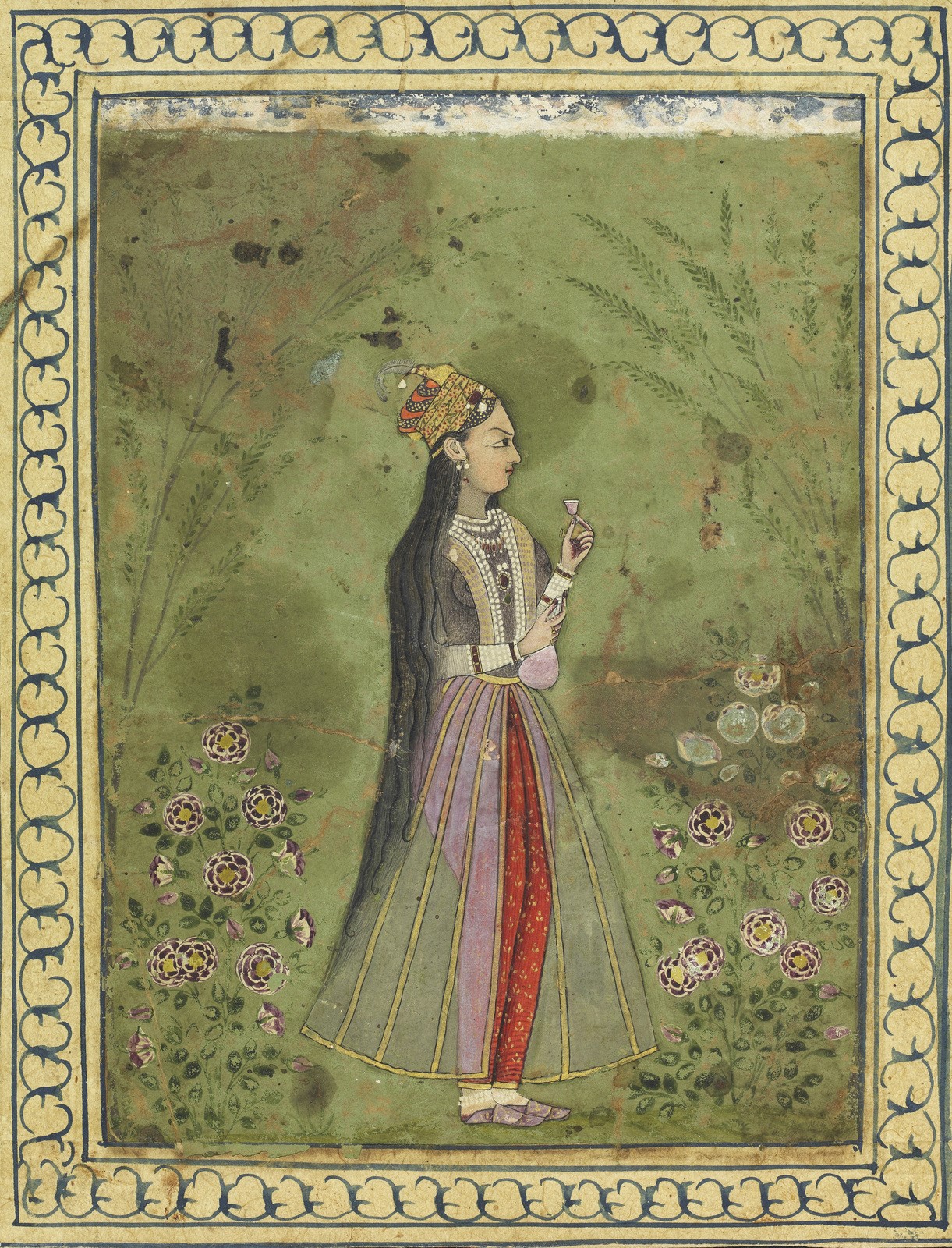 Arte Indiana Portrait of a noble woman India, Deccan, late 19th century Pigments and gold on paper .