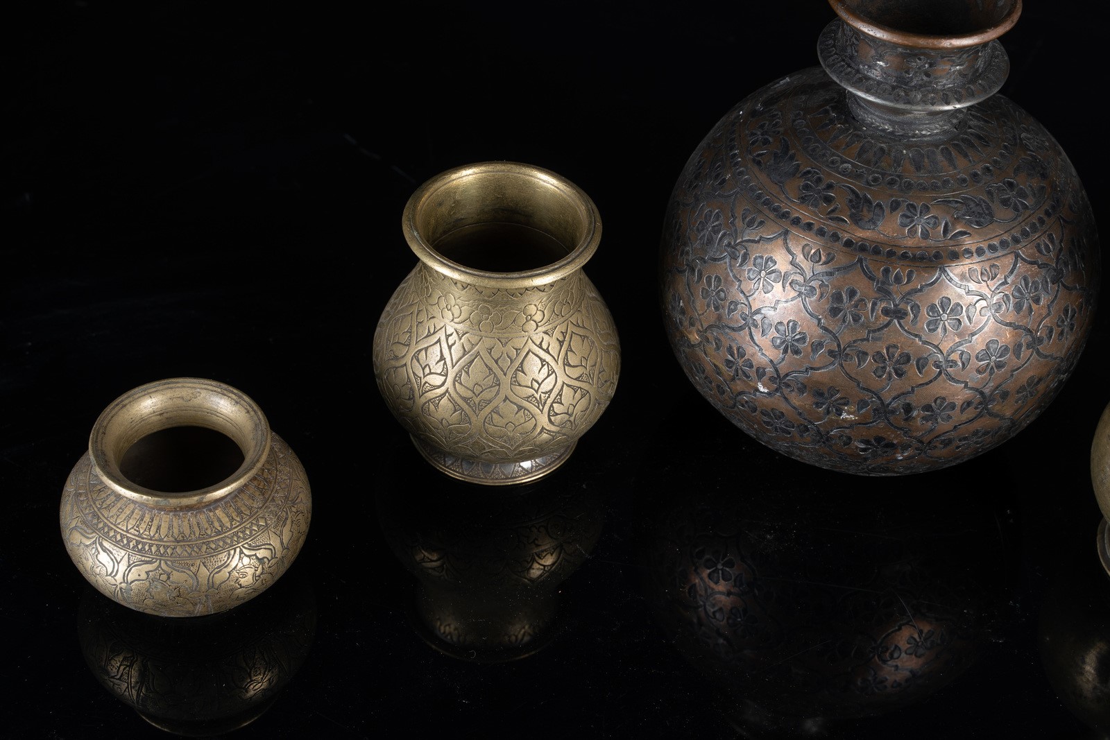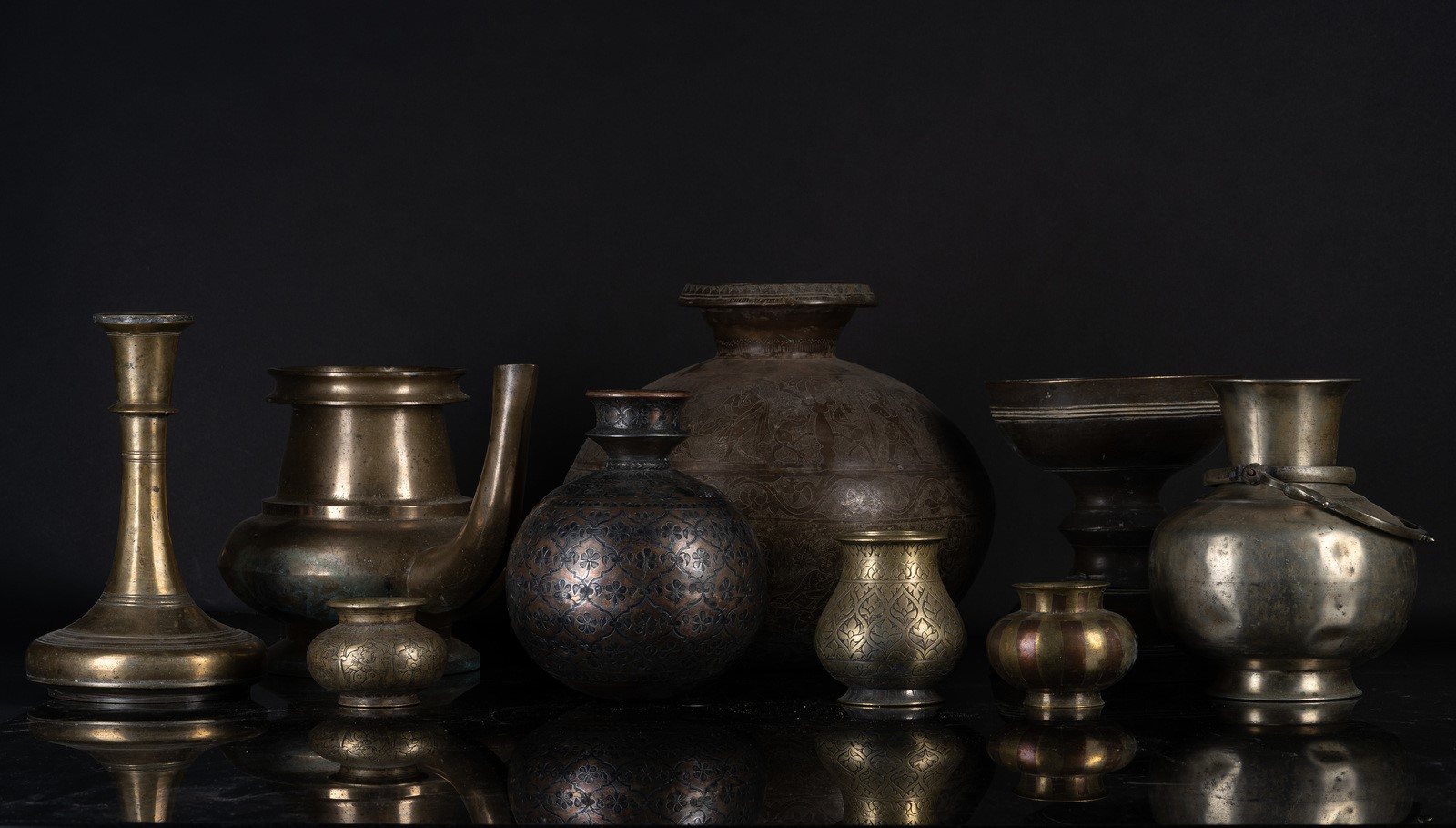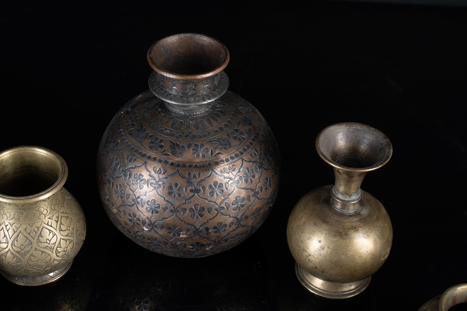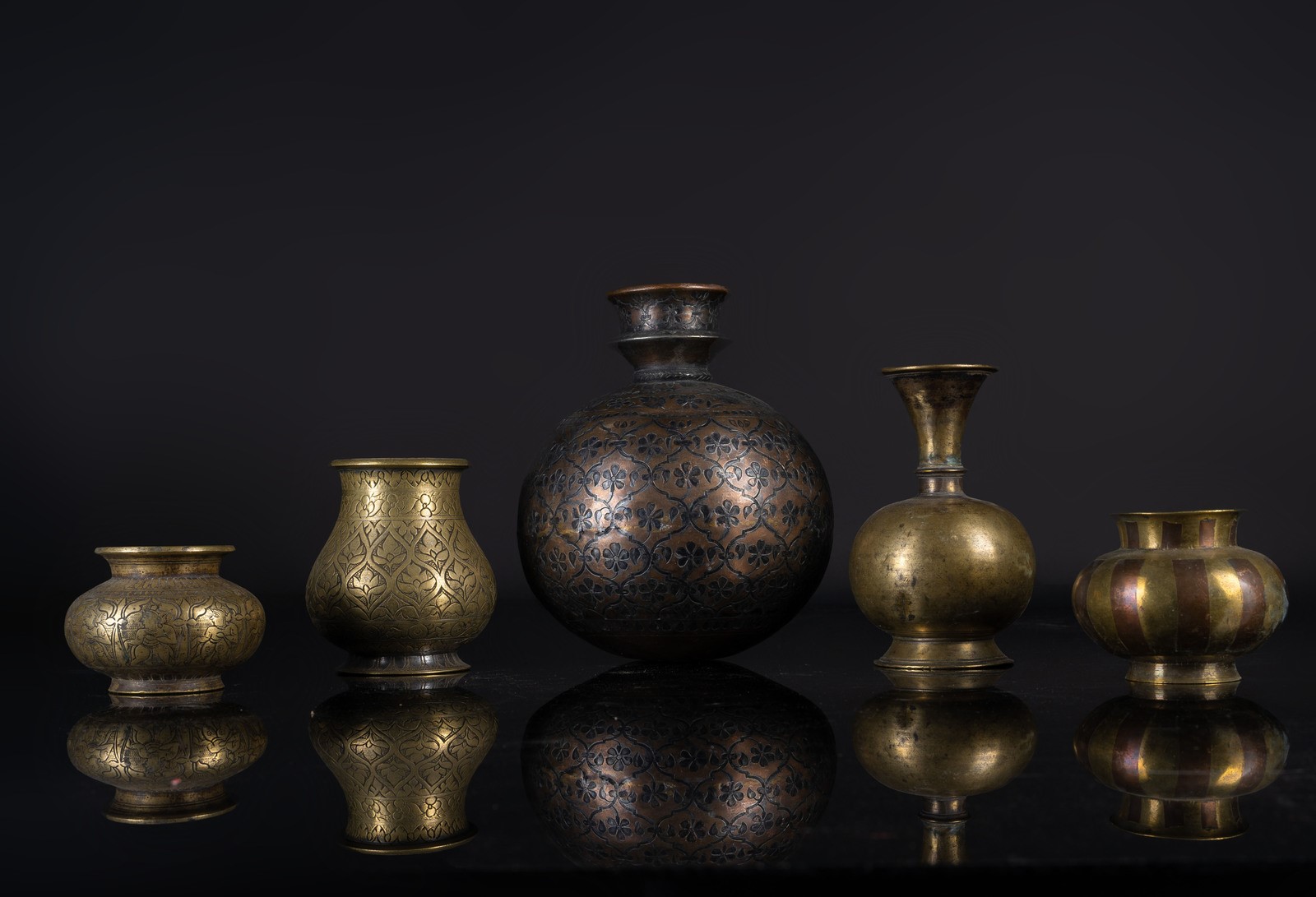 Lot 391 | Arte Indiana A collection of ten metal lotas, vases and huqqa basesIndia, 19th century .