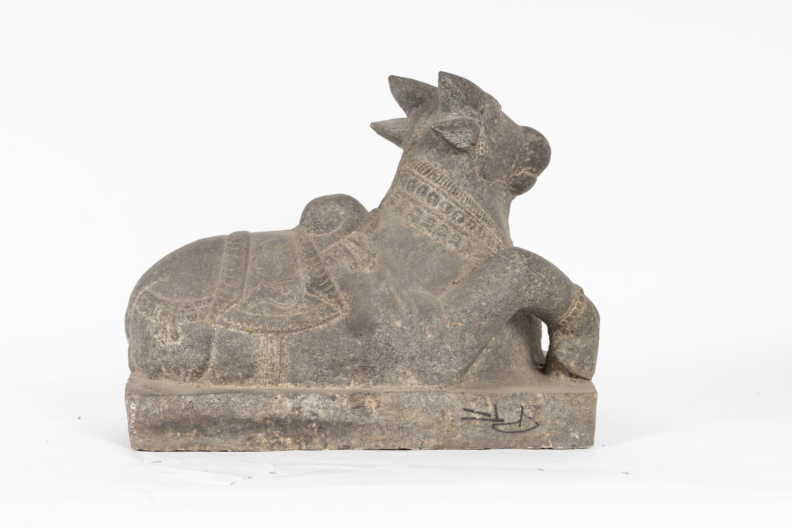 Indian Art A granite figure of Nandi Southern India, 18th - 19th century . . Cm 46,00 x 39,00 x 24,00.