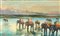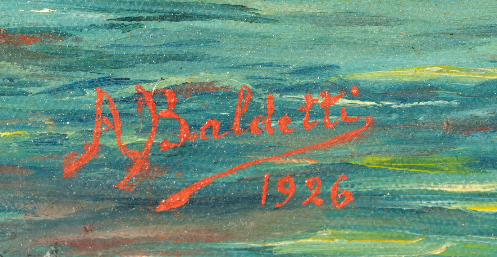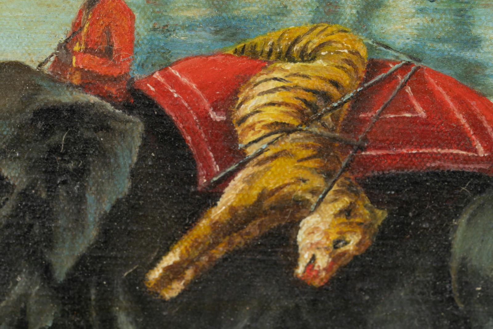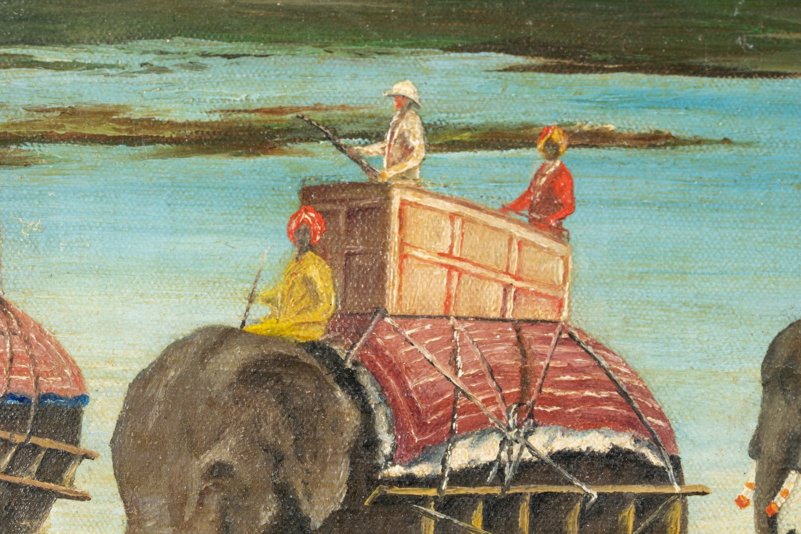 Indian Art A painting depicting elephants fording a river. Signed and dated A. Baldetti 1925Oil on canvas. . Cm 49,50 x 30,00.